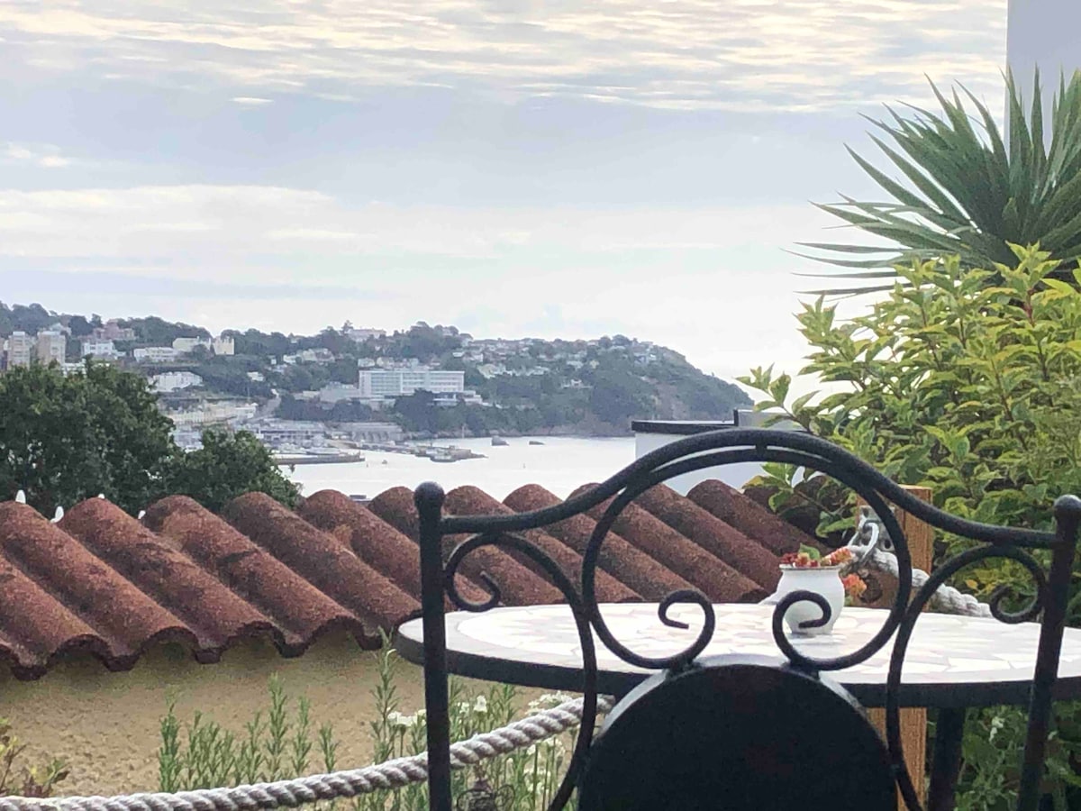 Sea view is just off the seafront in Torquay, 5 mins walk to the beach & 15 to the marina. Spacious 1st floor en suite bedroom with lovely sea views & sumptuous attic bedroom with a beautiful en suite & Velux balcony overlooking the sea. Private parking with EV point. We accept 3 nights min & 3-5 nights min/ peak season & school hols. * Sea View is located in a quiet residential area of Torquay and is therefore only suitable for those with a quiet relaxing time in mind*