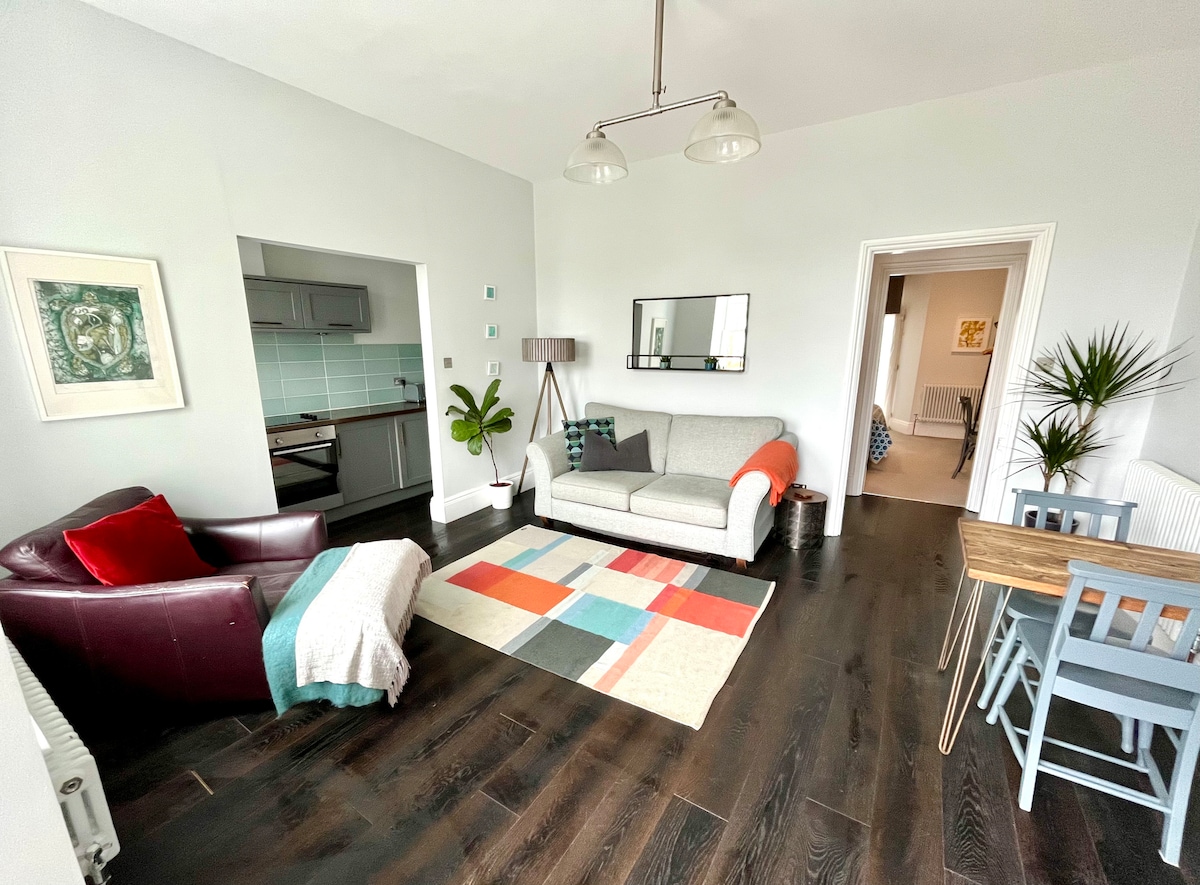 Situated close to Torquay seafront a recently decorated stylish and modern studio apartment with your own access. Beaches,country park, bistros and public transport close by. Perfect position for exploring Torbay. An ideal long weekend getaway. Lovely light and bright accommodation. Parking included, small kitchenette. The studio is on the first floor up a flight of stairs. Please note this has been refreshed and has changed to a self contained studio with no access into the main house.