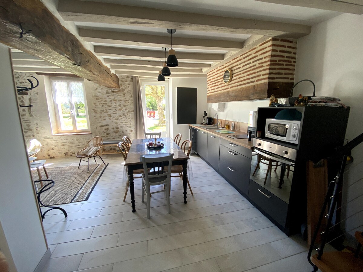 Come and enjoy the calm of the Berry countryside by staying in this charming, newly restored house! Independent house of 65 m2 with on the ground floor: a living room with open and equipped kitchen, a bathroom (Italian shower) + toilet. Upstairs: 1 large bedroom with 1 140 x 190 bed and 1 bedroom with 2 90 x 190 beds. Childcare equipment can be provided. Free Wi-Fi.