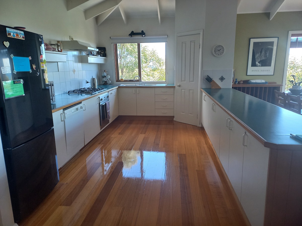 Our house is a light, bright spacious character home with ocean views from the kitchen, dining area and top deck. It is just a few minutes walk to the beach. Upstairs features the master bedroom, kitchen, bathroom and laundry and open living and deck. Downstairs has 2bedrooms and sitting room and 1 more bathroom. The sitting room can sleep one person . Immaculately clean, with a huge well equipped kitchen. Our place is suited to families but will also work well for small groups of friends.