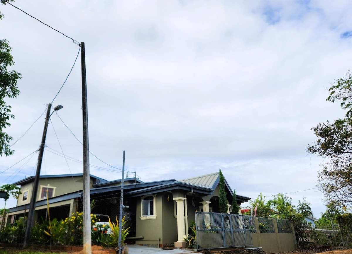 Centrally located in the City of California between Port of Spain and San Fernando on the west coast, industrial estate, and beaches of Trinidad, this peaceful and unique homestead provides an authentic retreat with a huge outside patio area for hanging out and enjoying the beautiful tropical weather. A full private kitchen, bathroom, shower, and living room are yours for your stay. In addition to the inside kitchen, an outside kitchen is also available. Free Wifi and parking included.