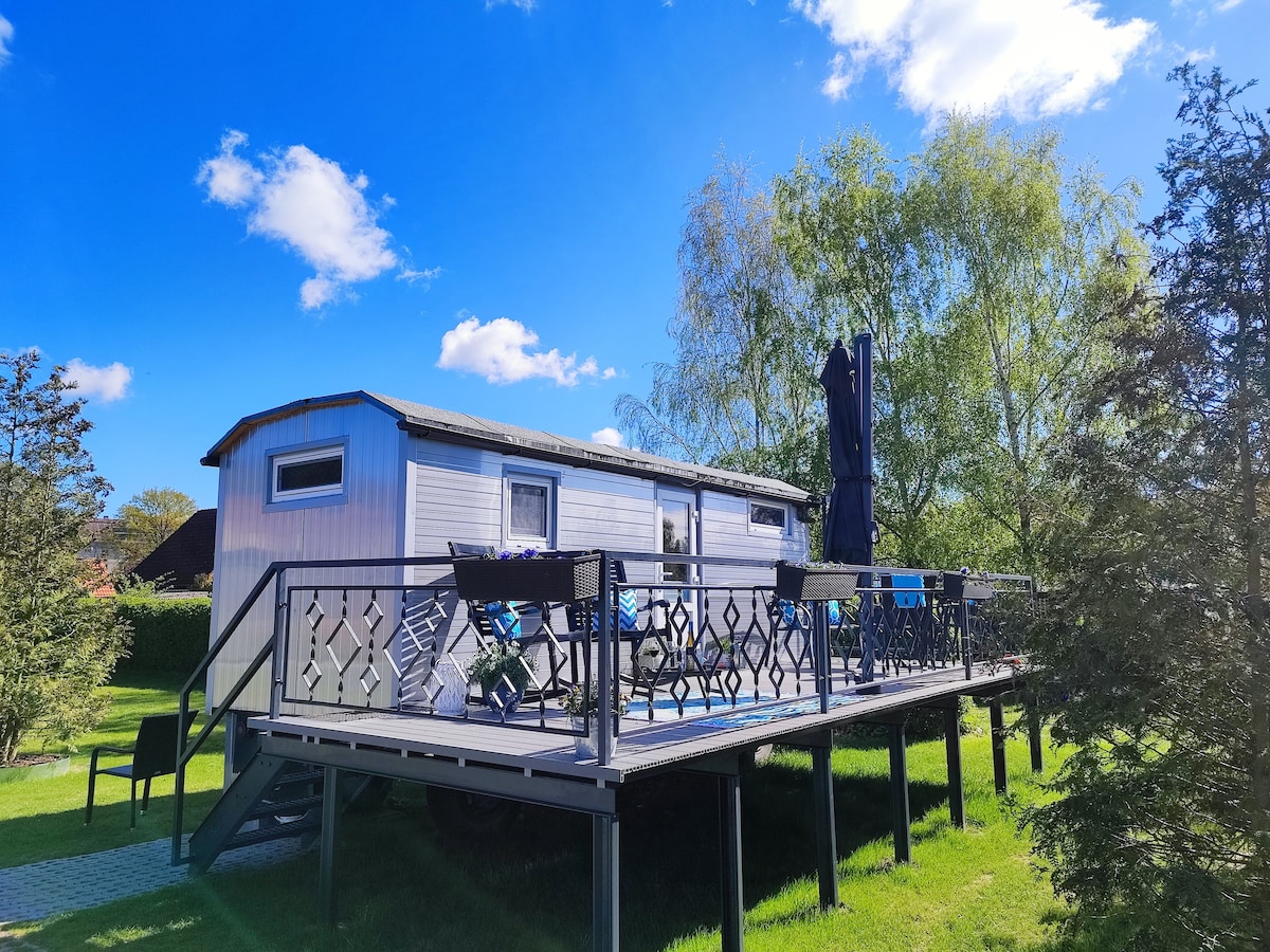 Enjoy the tranquility in the heart of the Mecklenburg Lake District in our upcyling construction trailer and drink your first coffee in the morning on the sun terrace overlooking the horses and in the evening a delicious wine on a starry night, large bed (at least 2 people)Couch to fold out and bedding (mattress under the bunk bed possible), construction trailer is on a small caravan site, new sanitary container, Body Cult (gym attached), pony farm (riding lessons possible), bed linen for €10 per person