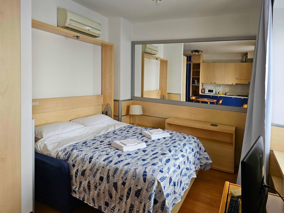 A beautiful 70 sqm loft welcomes you with a glass living room overlooking the sea and the city. Intimate and quiet, it has a separate double bedroom and a double sofa bed in the living area, accommodating up to 4 people. The kitchen has every comfort: dishwasher, microwave, illycaffé machine, washing machine. The southern exposure and the reflection of the sea give the house a warm and harmonious light, in summer the air conditioning gives peaceful sleep. Parking and terrace overlooking the sea and city. Unique!
