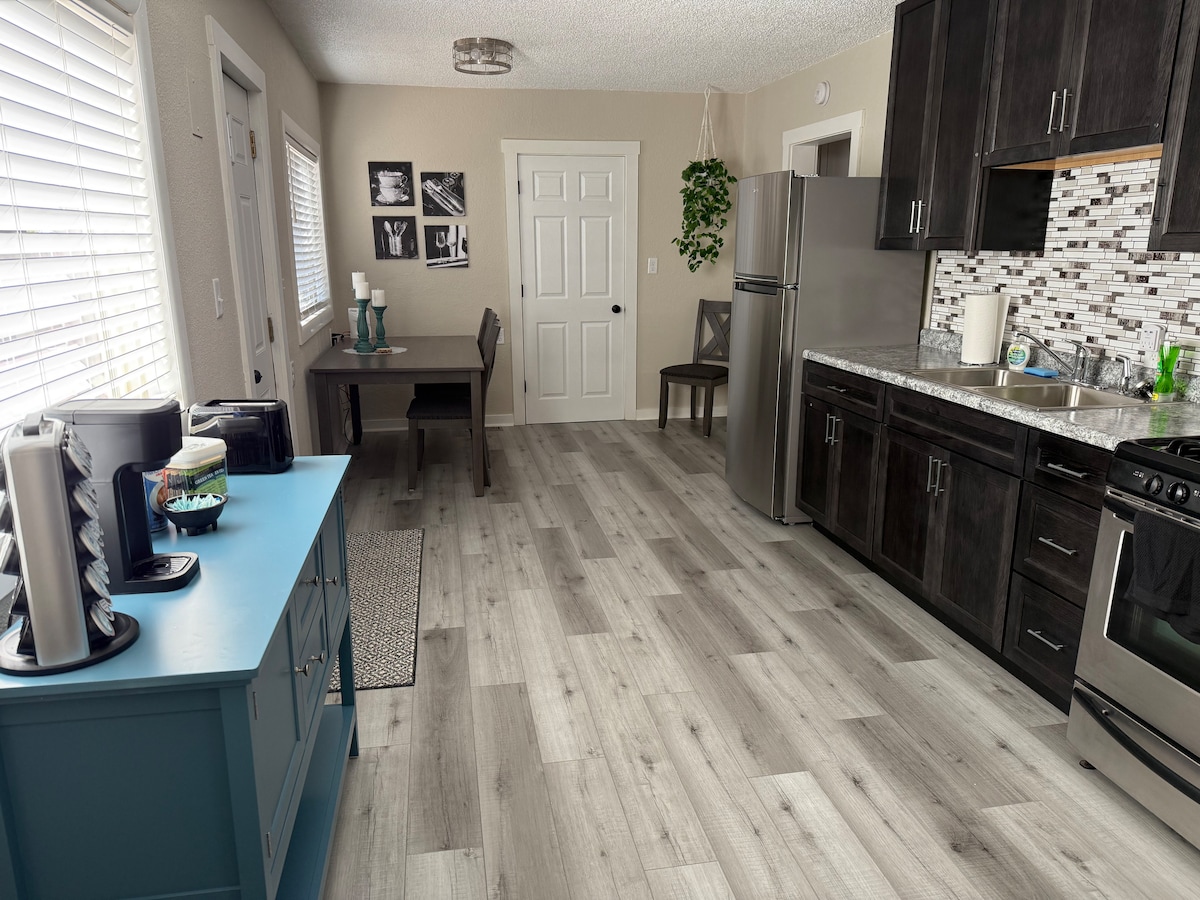 Adorable one bedroom, one bathroom place centrally located in town! Newly remodeled home with brand new bathroom and kitchen! Great private place for a weekend or extended stay! Have the entire place to yourself, including a full kitchen and washer/dryer. There is also an air mattress available if you need to accommodate kids or an extra person!