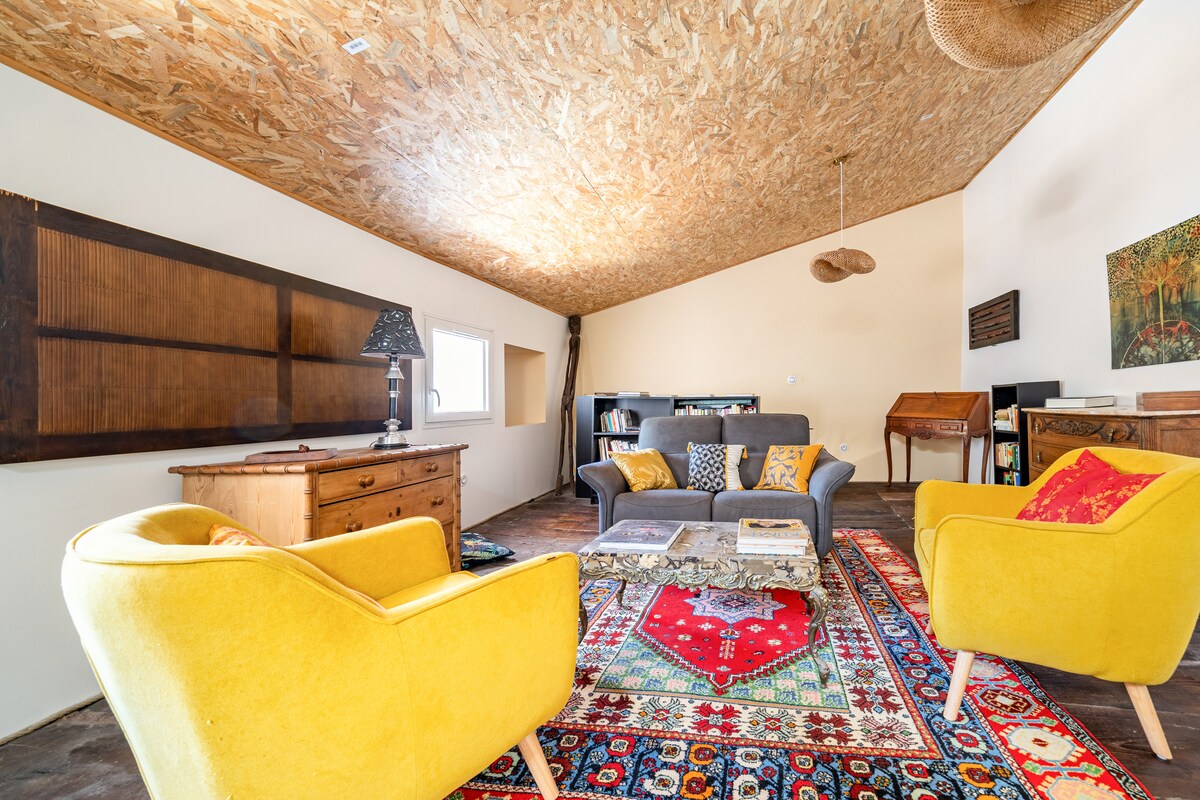Loft in the heart of Catalan Country. In a beautiful village, my loft is the perfect place to rest and discover the Catalan beaches and mountains. - A beautiful south-facing terrace overlooking the mountains and not overlooked. - 130 m2 - 1 master suite with 1 large 160 bed - 1 bedroom with 1 large 140 bed + 1 single 90 bed - 1 bedroom area with a 90 bed - two bathrooms. - a fully-equipped kitchen - a private patio over the bedrooms - TV and Wi-Fi - Wood-burning stove
