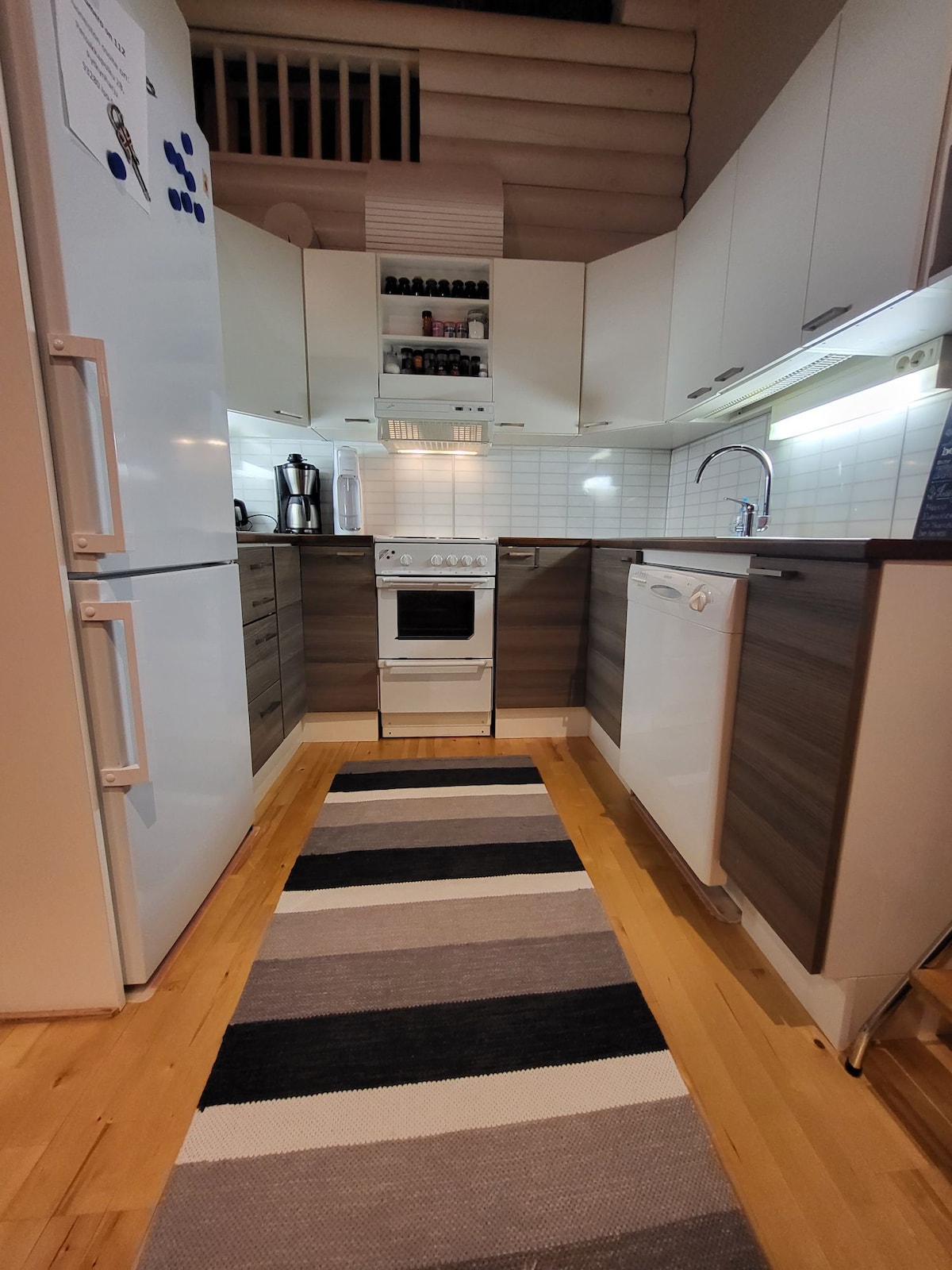 Welcome to the cozy Owl nest at the top of Iso-Syöte. The apartment enchants with a warm atmosphere and stunning views from the window. The location is perfect for an active vacationer. You can access the slopes directly from the front door, the trails start 300 m away. A real ski-in / ski out stay. The space is best suited for a couple or small family. All sleeping places are located on the loft. The kitchenette was renovated in the fall of 2023. In the kitchen, you'll find everything you need to cook.