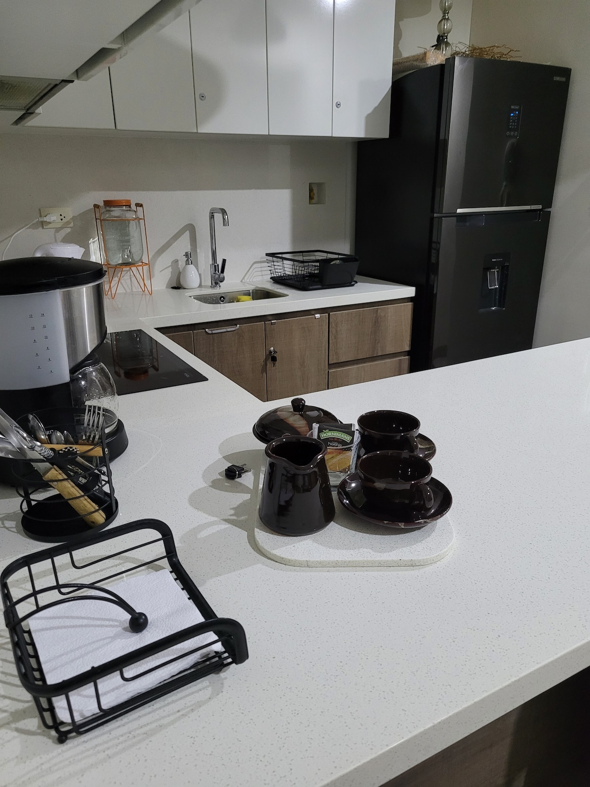 Acogedor departamento ideal para familias pequeñas. Ubicado en una zona segura. Cuenta con habitación privada con TV, baño personal y ropero. Cocina equipada con minibar, cocina a gas, lavadora y barra para comer. Comedor pequeño con ventana y TV adicional. Incluye cama plegable para un tercer huésped. Buena ventilación con dos extractores de aire, con agua caliente, WiFi, TV cable y área de parrilla junto a un jardín ideal para comidas al aire libre. ¡Reserva ahora y vive una escapada perfecta!