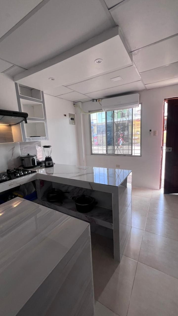 Alojamiento cómodo y totalmente equipado, ideal para estancias largas. Dispone de aire acondicionado, cocina con refrigeradora, TV y WiFi Starlink de alta velocidad. Cuenta con un dormitorio con dos camas y un ambiente adicional integrado de cocina, comedor y sala. Ubicado en un sector tranquilo y céntrico, a solo 10 minutos caminando del aeropuerto y a 3 cuadras del malecón. Frente al alojamiento hay una tienda para mayor comodidad. Capacidad máxima: 1 a 3 personas.