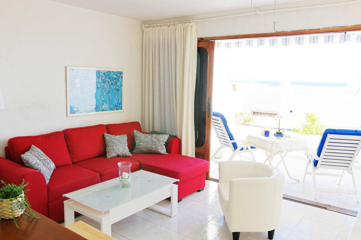 Casa Enda is a cozy modern and quite apartment with an amazing sea view just 5 mins walking from Playa Chica. There you will reach 7km of gold beaches. Swimming pool inside the complex.Casa Enda is perfect for water sports lovers.The most beautiful trails of the island start just outside the door. Even shopping lovers like the location.In the evening you could jump into the colorful nightlife of the island and discover its tasty local cuisine.At Casa Enda everything is just a stone’s throw away!