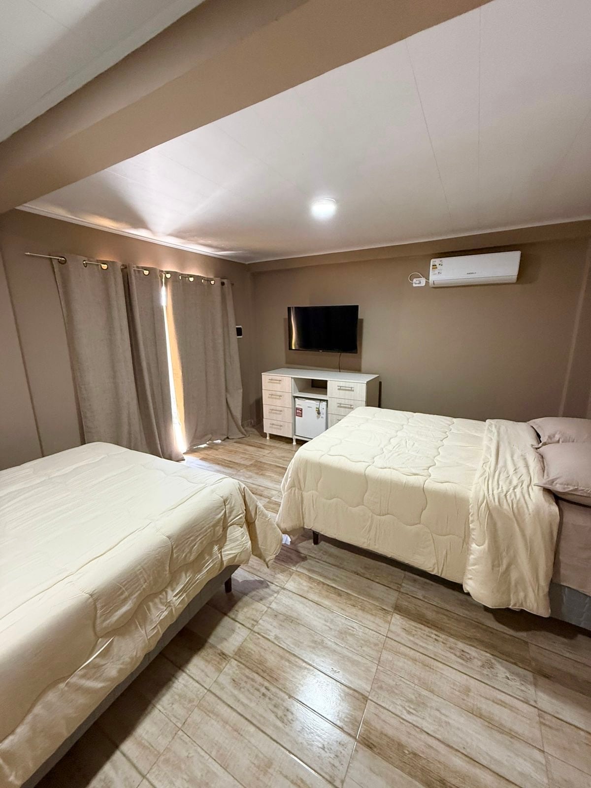 Enjoy a practical and comfortable stay in a truly central location, ideal for getting around Puerto Iguazú without relying on a car. The entrance is fully autonomous with a code lock, offering you absolute freedom of schedules. We have fast Wi-Fi, a generator, a pool, an outdoor dining room with a refrigerator, an electric kettle, and space to wash dishes. In addition, we have a work area with air conditioning for greater comfort.