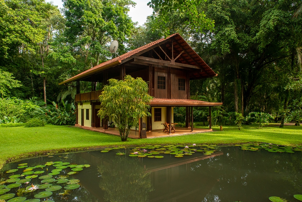 This gorgeous property is situated in two acres of lovely garden with big trees, lawns, and 3 ponds from which emanates an amazing chorus of frogs every evening. The land then extends back towards Corcovado with 32 acres of rainforest, with a range of mammals in it. Sitting on the veranda, the rainforest is right there and usually squirrel monkeys, trogons, aracari and toucans, moving about. At night, the kinkajou family come and visit and you can watch them from the veranda.
