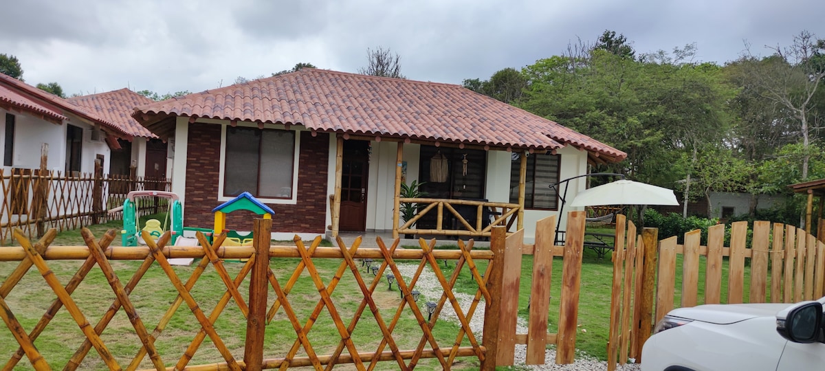 Cabin located in Hacienda Olonche in the village of Olon, with a lot of security, surrounded by nature, several activities to do such as horseback riding, lake for fishing, tennis courts, basketball, football, skateboarding, children's games, a lot of tranquility and if you want fun it is a 5 minute drive from Montañita, close to restaurants and the sea; one of the largest beaches in Ecuador; very quiet and safe place, spondylus route very touristy area. Ideal for pets