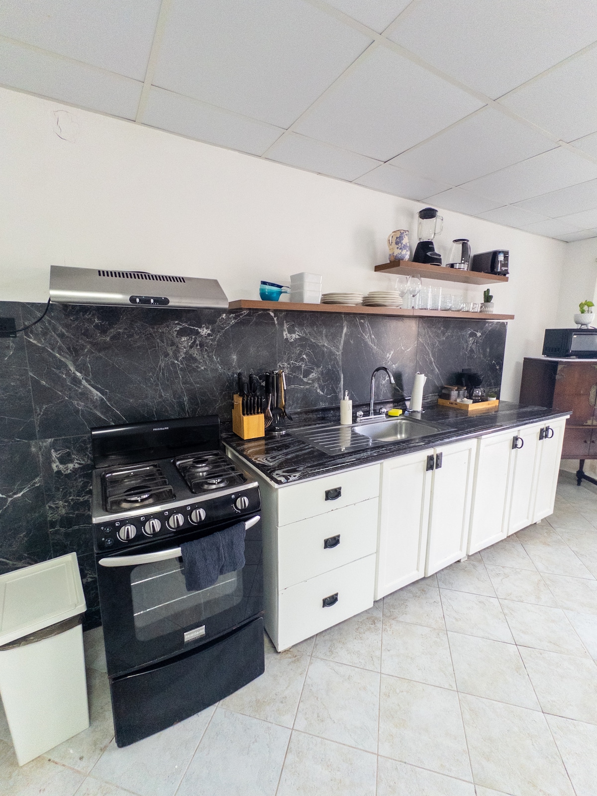 Make yourself at home in our new modern studio in Cabarete, located in the dynamic neighborhood of "Callejón De La Loma" — just a short walk from the beach and all the main attractions. This contemporary space features an open-layout bedroom with a queen-size bed, a functional kitchen, a spacious bathroom, and a private balcony. Designed with large sliding patio doors for plenty of natural light, it's accented with cozy curtains, Spanish tile, and a stylish mix of wood and steel elements.
