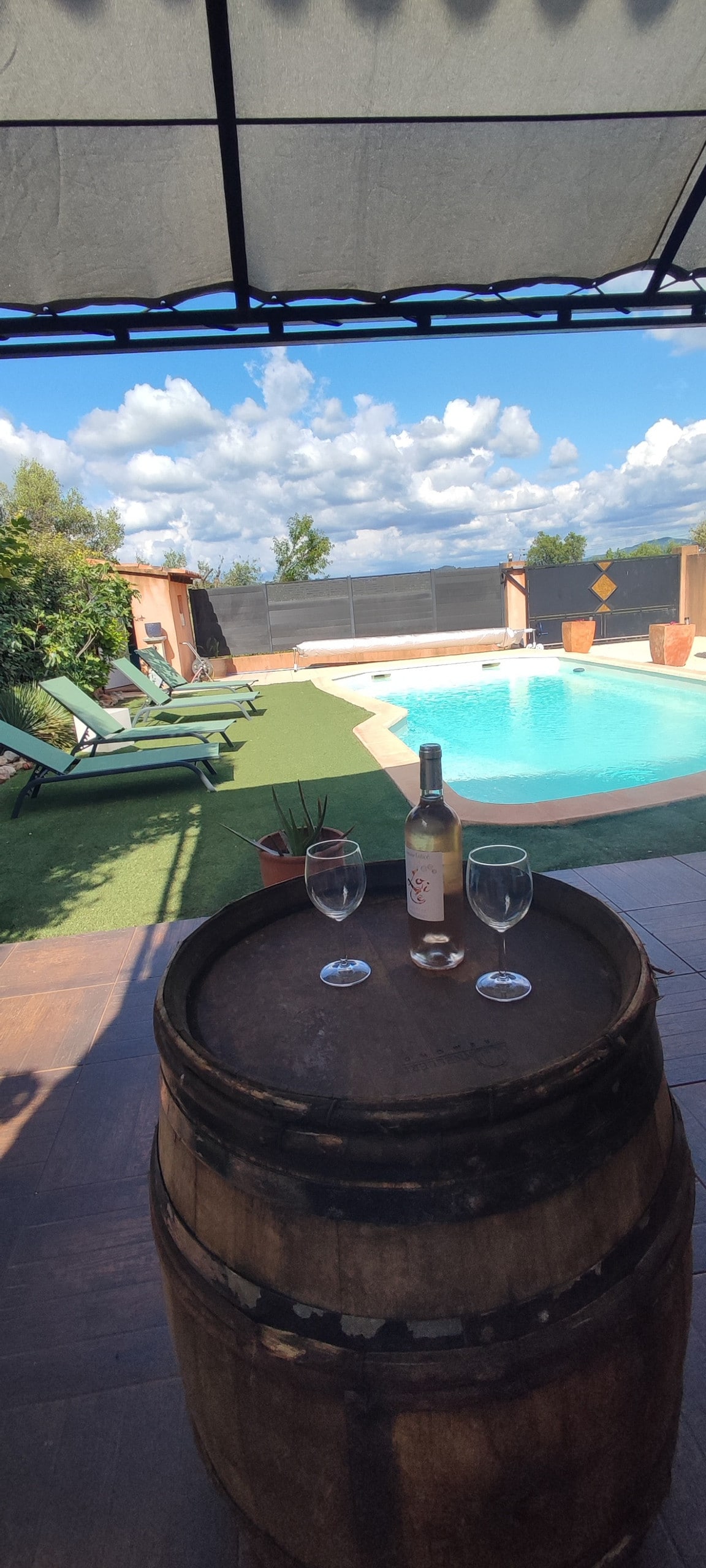 Located in the Coeur du Var region, our accommodation is an independent part of our house. Ideally located to allow you to travel around our beautiful department. You can explore its beautiful beaches but also its charming hinterland. You can also peacefully enjoy, with breathtaking views, the pleasures of swimming in our large shared pool or take a walk on the GR, which passes behind our house.