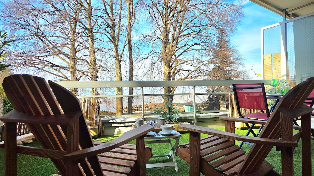 Exceptional apartment with panoramic views of Lake Geneva and the surrounding mountains. Without a vis-à-vis, it will seduce you with the surrounding greenery and calm. The apartment is located in a residential area on the heights of Thonon-les-Bains overlooking the city center. It is ideal for summer and winter vacations with the nearby ski slopes as well as access to the lake. (2 mountain bikes, 1 canoe, 1 paddle available, TV with Netflix access)