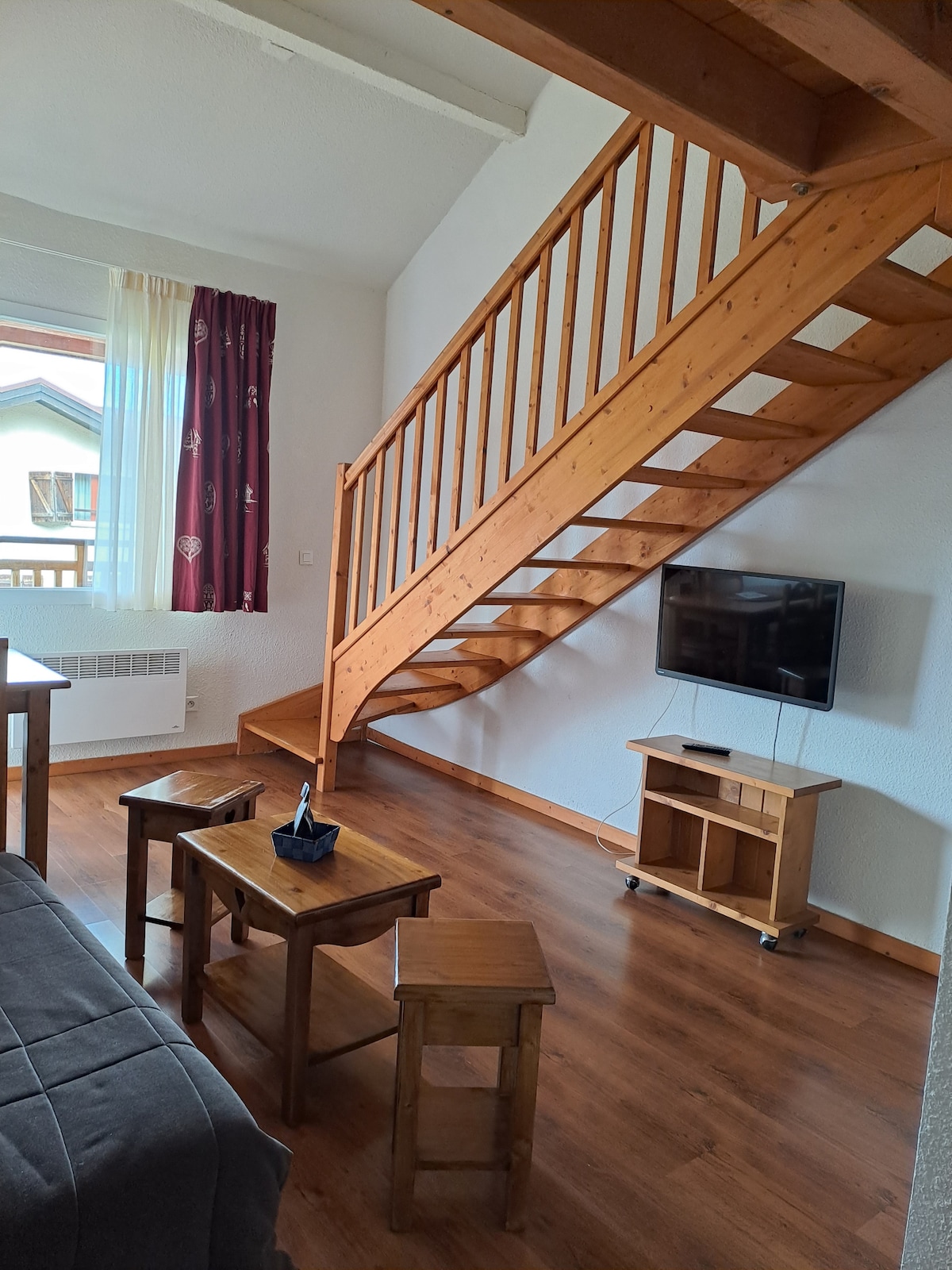We offer a spacious, completely renovated studio for 4 people in the center of Châtel, located 100 m from the Superchâtel lift. The studio consists of a living room with fully equipped kitchen, dining area and sitting area (including a retractable bed); an entrance with mountain corner (two beds), a bathroom, a separate toilet, a clearance separating the living area from the mountain corner and a balcony with unobstructed mountain views. Pets welcome upon request. Multi-pass available.