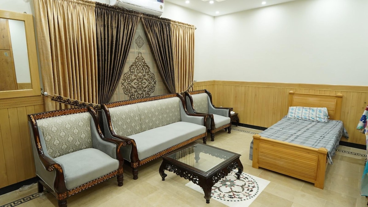 ✨ Welcome to Haveli Inn Resort - Near Trail 7 - Heart of Margalla Hills – Cozy Retreat- Window Mountain view- Private Terrace - Event hall - Meeting Room- Attached Restaurant - Rooftop sitting - 10 minutes from Blue Area. Enjoy stunning mountain views, relaxing private rooms, and warm hospitality. Wake up to a fresh daily breakfast, explore and unwind in a full-service stay designed for comfort. Perfect for families, friends, or solo travelers looking for peace and style.