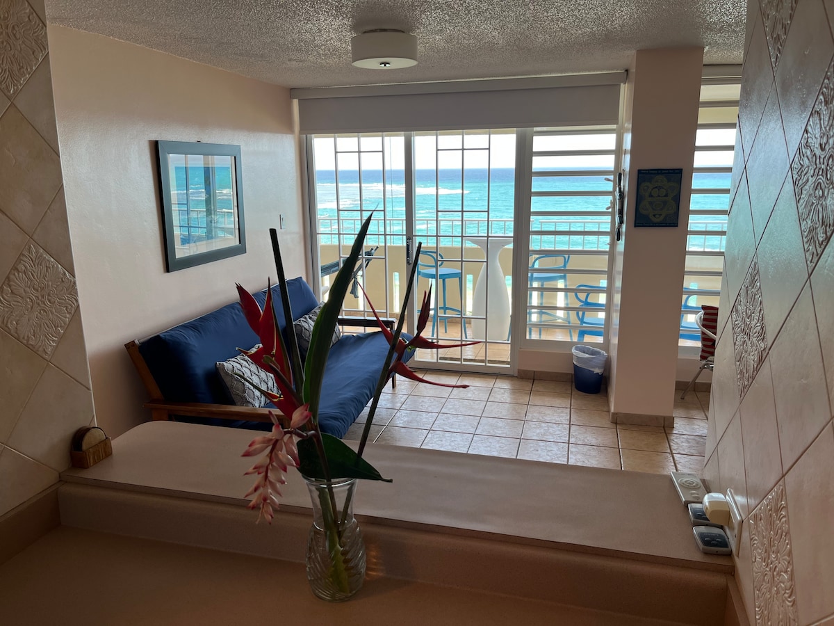 This is a 15th floor 1 bedroom apt. steps from the beach with a spectacular beach front view from the balcony in Tower I. It has high speed internet, 2 Smart TV's, air conditioners, washer, dryer and fully loaded kitchen. It is 35 minutes from Luis Muñoz Marin Airport and Old San Juan. Additionally it is nearby from El Yunque Rainforest, and 2 min. from the "kioskos de Luquillo & Luquillo Beach". It accommodates 2 people with private parking for rental vehicle and 24/7 security.