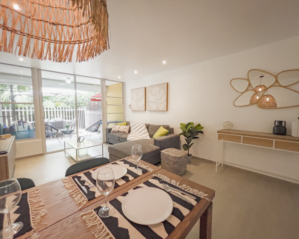 One deserves to be rewarded and this renovated condo has all the amenities within a 3 min walk to the beach! The apartment features upscale furnishings with a fantastic vibe that will make your vacation a feel good experience to remember! Secured entrance w/parking. Ideal strategic location as a base to discover the rest of the island. Potential earlier check-in. Within minutes from El Yunque, kiosks, Fajardo ferry to Spanish Virgin Islands, local restaurants. 30 minutes from (SJU) airport.