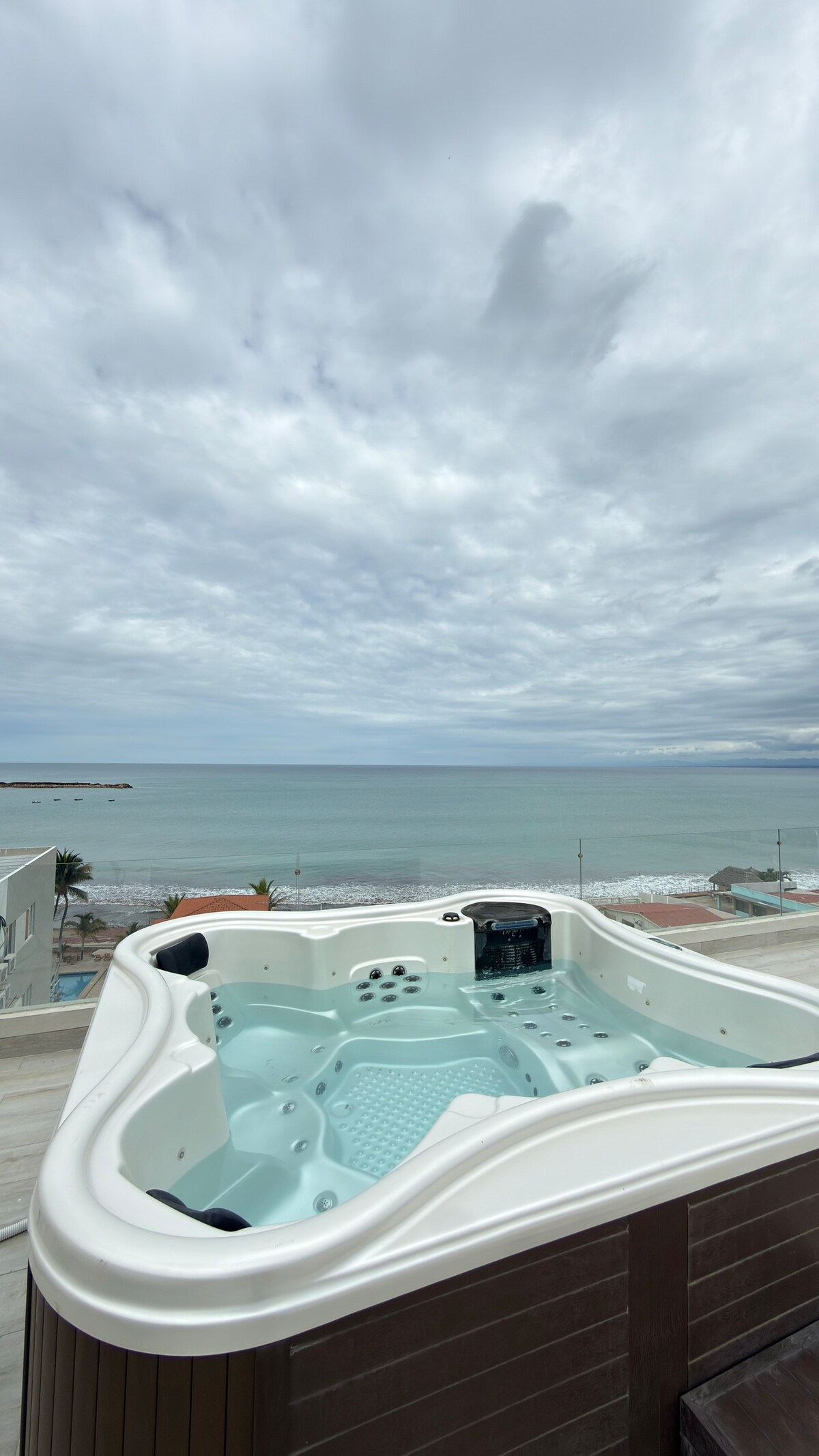 PB Penthouse exclusive oceanfront experience if you are looking for elegance, relaxation and security 300 meters from the beach with panoramic views. Includes: > Private panoramic hot tub >Rooftop with ocean views >4 rooms with A/C, bathroom and curtain >Private parking for 1 vehicle (open street parking and others with a fee) >Pool, 24/7 security, elevator, hot water >Fast Wi-Fi, Netflix, YouTube >Refrigerator, kitchen, washing machine >Coffee maker, microwave, air fryer, blender >Towels, linens and paper