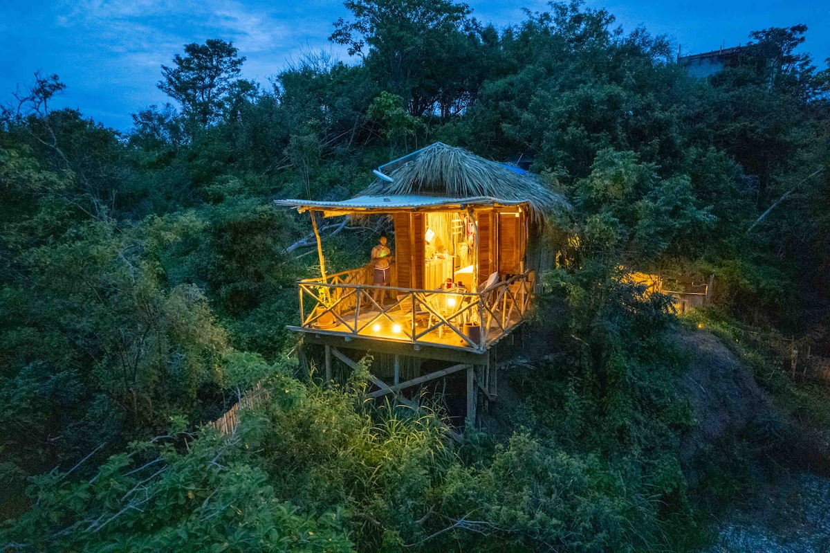 Cabaña ubicada en Casa "Luna de Piedra" A la playa se llega en 5 minutos caminando, de igual manera a la zona de restaurantes, cafés y bares La cabaña cuenta con cama KS, cocineta, baño privado, caja de seguridad, closet, ventiladores, terraza y hamaca No cuento con aire acondicionado ni estacionamiento pero puedo conseguir espacio para tu auto si me avisas antes En el mismo terreno se encuentra una casa y otra cabaña. En el día puede haber ruido de construcción no fuerte de mis vecinos.