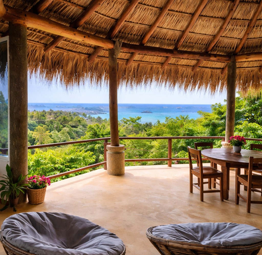 Casa Coco is located in a very quiet area, ideal for watching the sunrise and seeing the sun and moon rise over the mountain. From the main street to Casa Coco you have to climb 61 steps if you come walking, we also have vehicular access and parking on the street. The house is equipped with a bedroom with a king-size bed and A/C, high-speed Starlink internet, a private bathroom, hot water, a kitchen, a dining room, a desk, a cool room with an ocean view, and a terrace with a Jacuzzi.