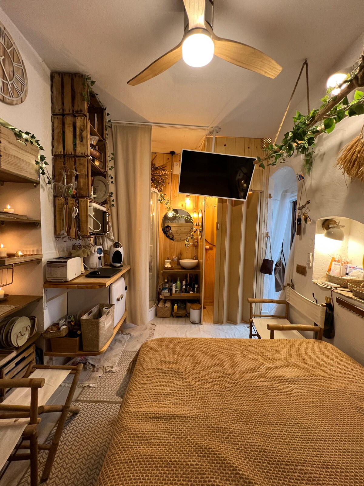 Cozy apartment in the heart of Tarifa's historic center, on a very quiet street with total silence to relax and less than a 10-minute walk from the beach. You'll have an amazing experience in this boho-style studio with a patio. It has WiFi, air conditioning, a double bed, a toilet with a hydromassage shower, a fridge and cooking appliances such as a ceramic hob, microwave, airfryer, coffee maker and kettle.