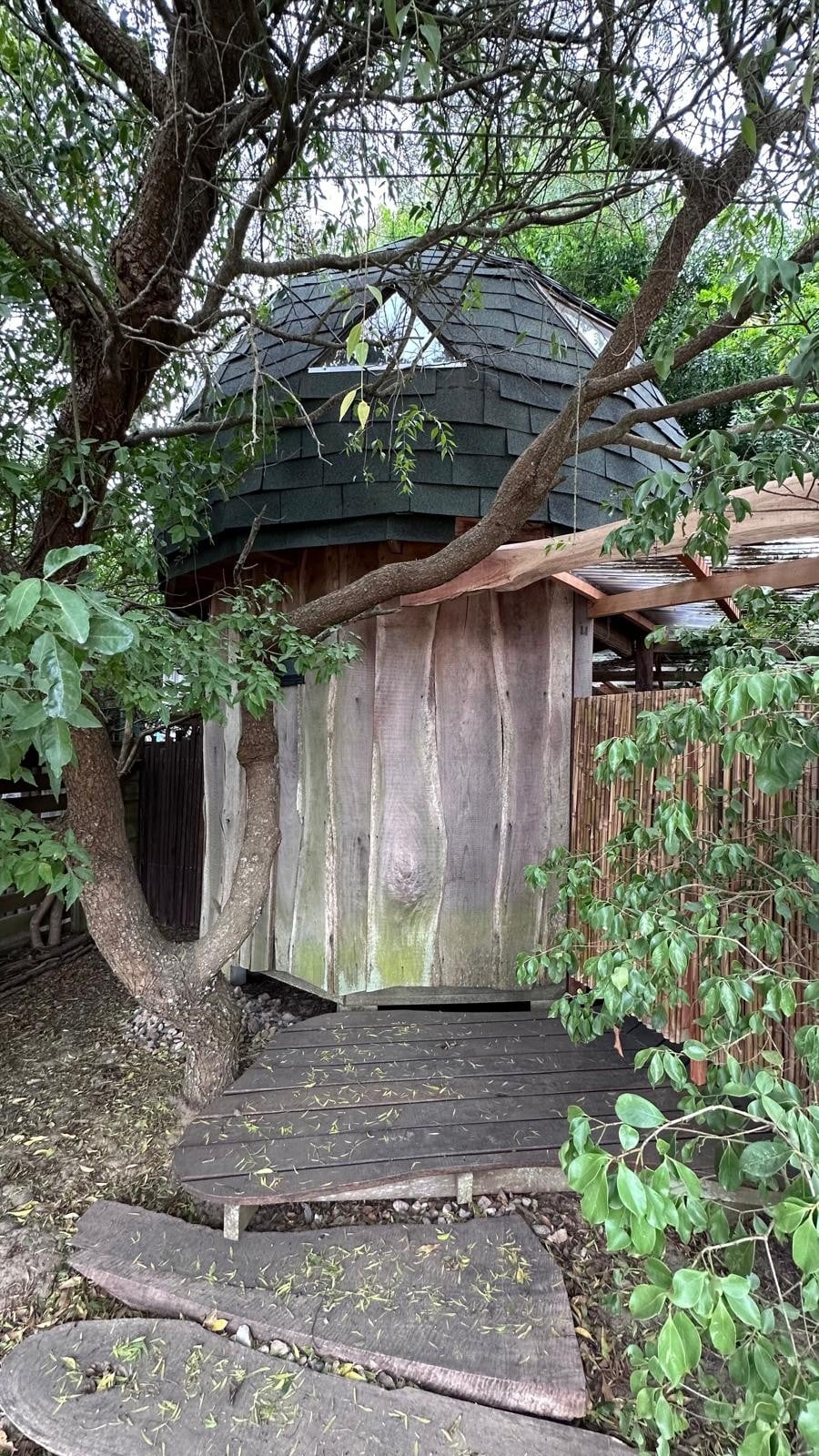 Dome in El Bosque neighborhood, very close to Playa Grande, surrounded by greenery. It has a bathroom with a shower and hot water and a room in the dome with a double bed and air conditioning. It also has a small kitchen area with an electric kettle, minibar and basic utensils. It's a small space, like for 2 or 3 nights. The room is warm during the day, the living space is a small garden, with Paraguayan hammocks. Property shared with my house.