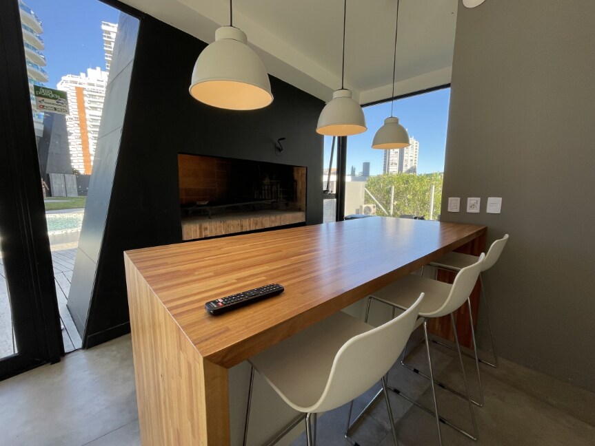 Beautiful loft on the 13th floor of Place Lafayette, overlooking Playa Mansa. Located next to Punta Shopping, in an area full of services, ideal for enjoying Punta del Este all year round. Fully furnished, with wifi, smart TV, garage, daily cleaning and 24-hour reception. Amenities: - Indoor heated pool -Outdoor heated pool -sauna -gymnasium -cine - Games Room -Laundry (at extra cost) - Barbecues (at a cost) - Summer beach service at stop 7 and a half of La Brava