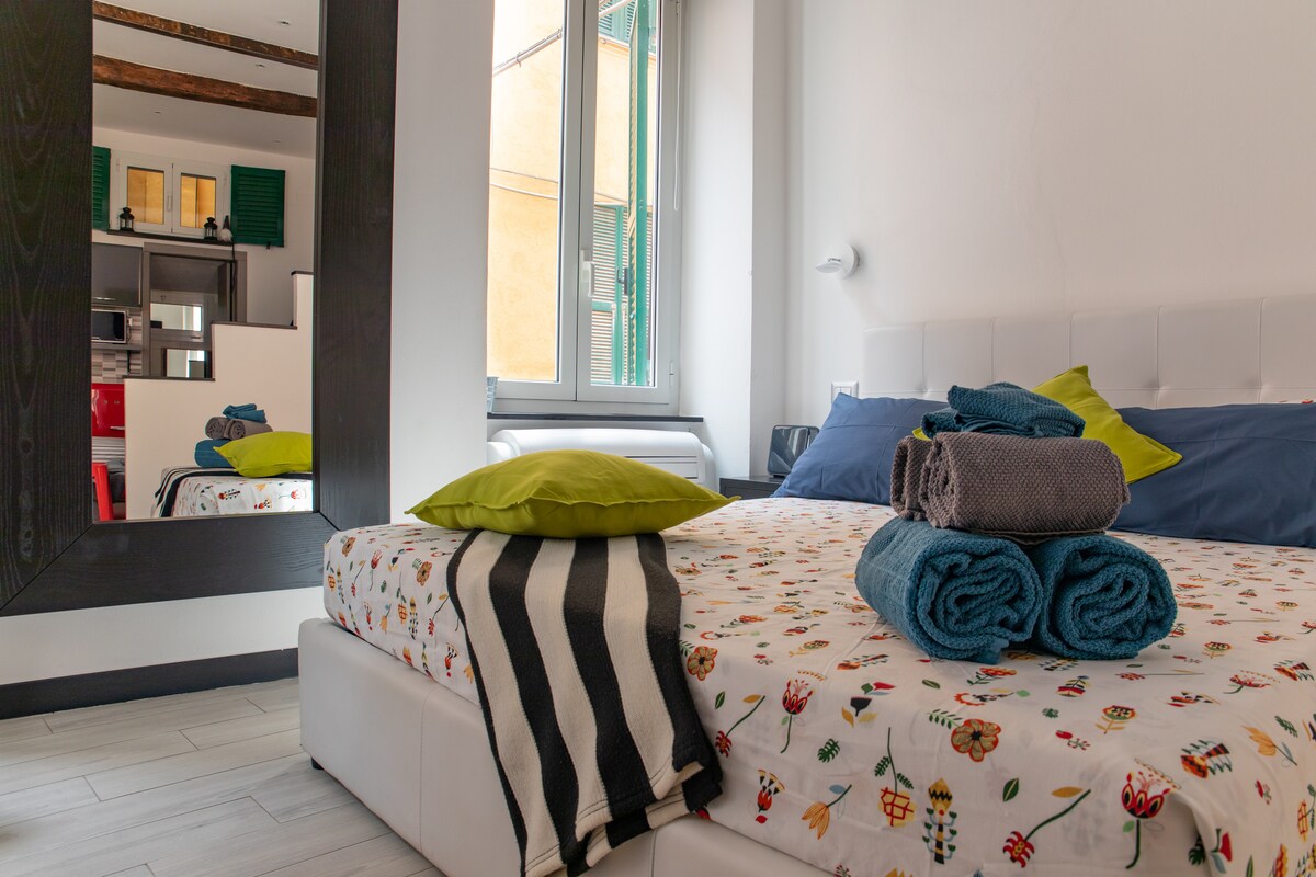 We Welcome you in our newly renovated, beautiful and sunny Apartment in the heart of Monterosso al Mare, 3 min to the most beautiful beach in Cinque Terre. Our AC accommodation with balcony offers fully equipped kitchen, shattaf, WIFI, smart TV, Netflix , security door, smoke detector, extinguisher and first aid kit . We have a Kingsize bed and a comfortable double Sleepingcouch plus and extra single Sofabed. We offer Babybed and Babyproducts free of charge and organic Bath-essentials.
