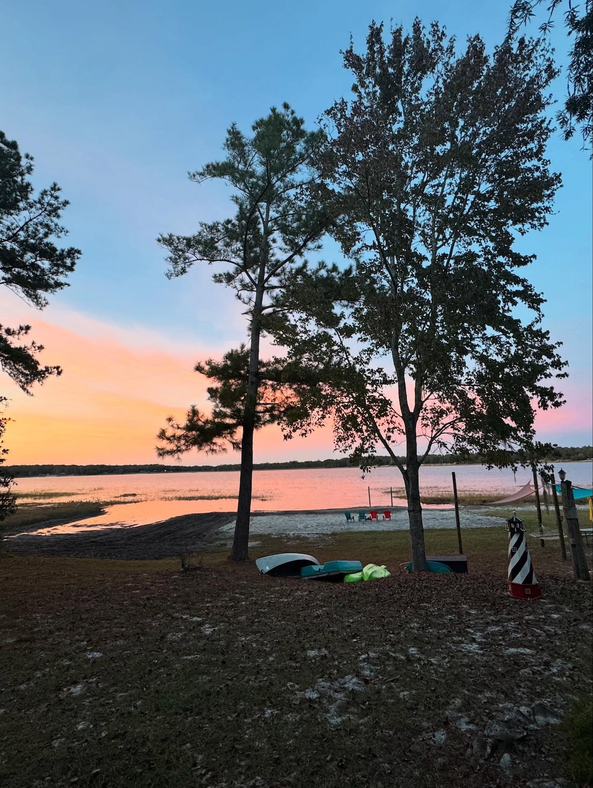 Adventure awaits at Paradise at Point Pleasant! Bring your boats and ATVs to this pet friendly, handicap accessible home on canal to beautiful Lake Kerr. Located in the heart of the Ocala National Forest, Lake Kerr is a freshwater lake with great swimming and fishing. Pontoon rental on site when available. Sit around the fire pit, make S'mores and view the night stars! Great fishing onsite as well as complimentary kayaks.