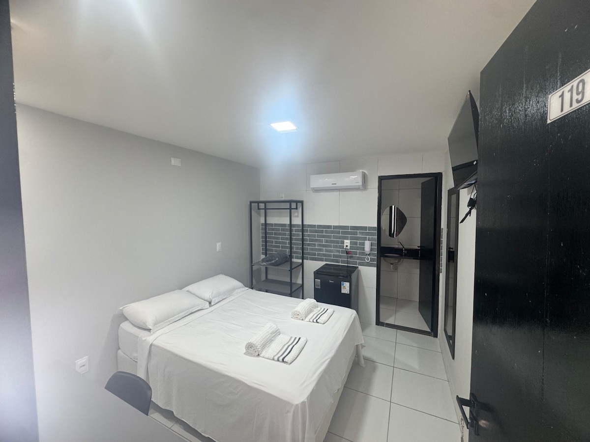 Flat aconchegante com cama de casal, ideal para quem busca conforto e praticidade. Ambiente climatizado, decoração moderna, Wi-Fi rápido, Smart TV e banheiro privativo. Localização estratégica e segura. Perfeito para estadias rápidas ou longas, oferecendo o melhor custo-benefício da cidade.
