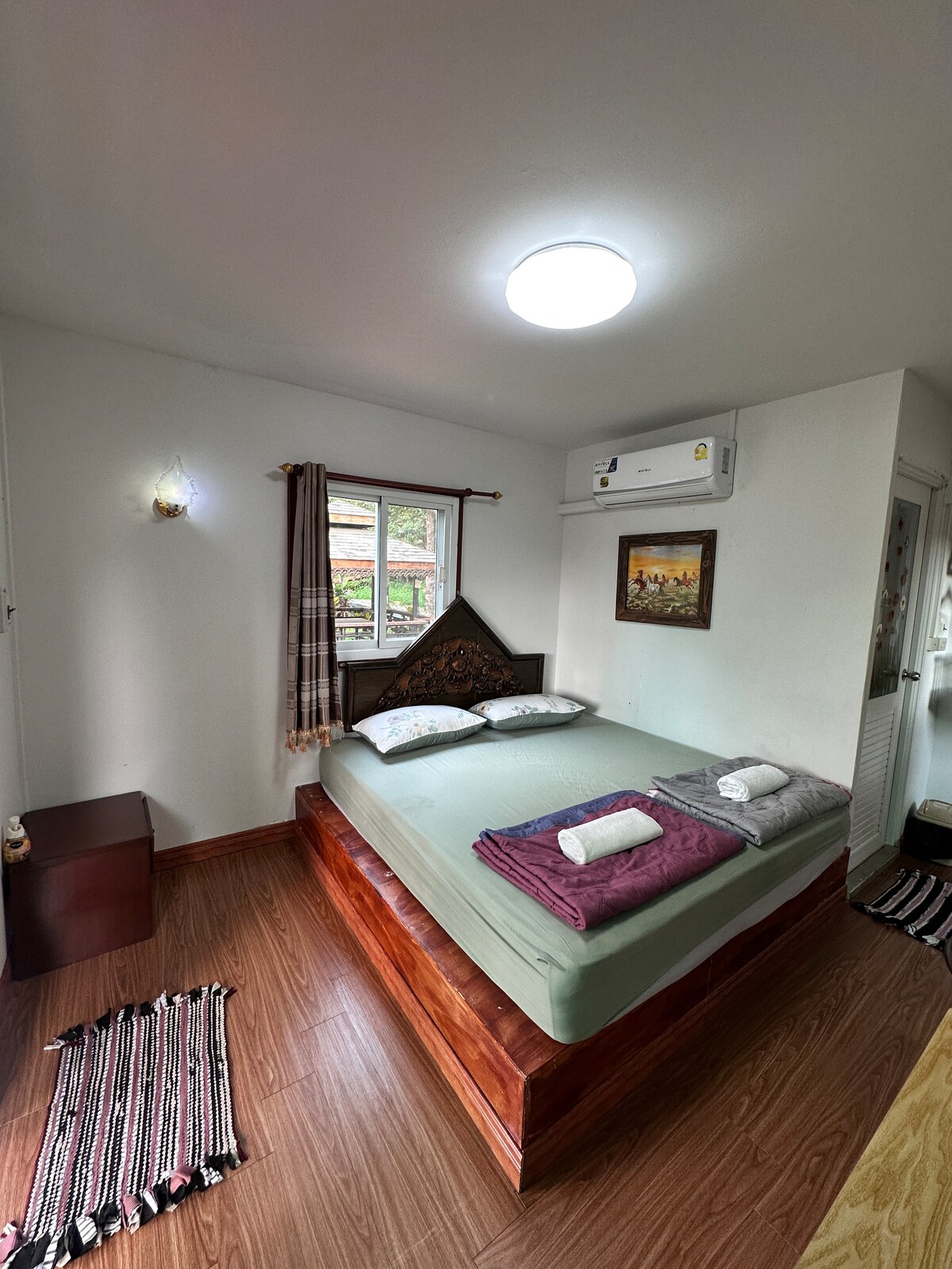 Relax at Rosemary @Rayong – Calm & Comfy. Enjoy a quiet stay in a private room with a queen-sized bed, air conditioning, and a private bathroom with hot water. The solid wood shutters keep the room dark and cool. Our friendly Thai hosts live on-site and love to welcome guests, even without English. Thai breakfast available on request. Located 15km from Khao Chamao National Park, 2km to Wat Ban Na. Free parking. No Wi-Fi – perfect for a peaceful retreat.