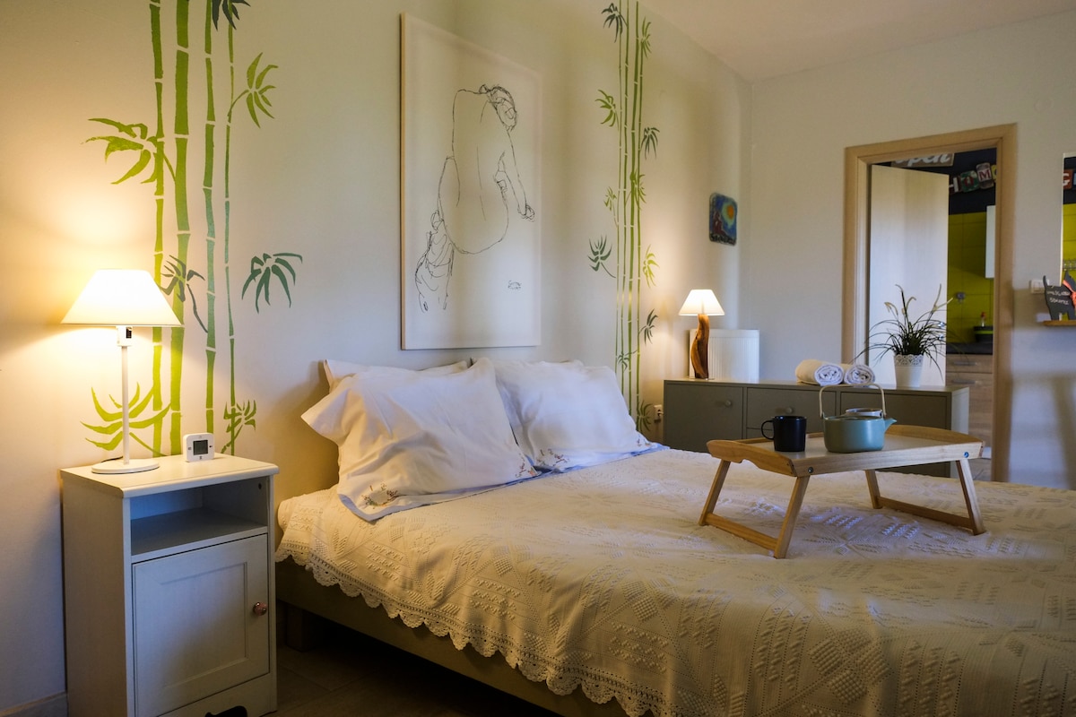 Καλώς ήρθατε στην δική σας πράσινη όαση στην Πυλαία θεσσαλονίκης. Σε ένα ήσυχο και φιλόξενο χώρο μέσα σε βιοκλιματική κατοικία απολαύστε άνεση, ιδιωτικότητα και πρόσβαση σε καταπράσινο κήπο - μόλις 12 λεπτά από το κέντρο της πόλης , 15 λεπτά από το αεροδρόμιο, 5 λεπτά από την κλινική Αγ. Λουκάς και δίπλα σε καταστήματα, εστιατόρια φούρνους και στάση λεωφορείου. Είτε ταξιδεύετε για χαλάρωση ή δουλειά, ο χώρος μας είναι φτιαγμένος για ξεκούραση , έμπνευση και φιλοξενία με χαρακτήρα.