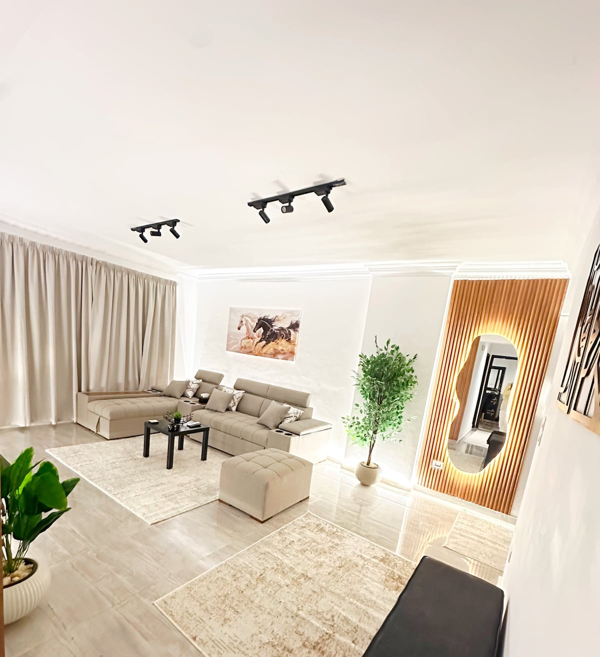 Spacious 2 bedrooms apartment featuring first row stunning view of the pyramids. With the easiest accessibility for a pyramid view property, directly located by the main road, and right beside the new Grand Egyptian Museum. This newly furnished sunny apartment is exactly what you need for an unforgettable stay during your trip in Egypt.