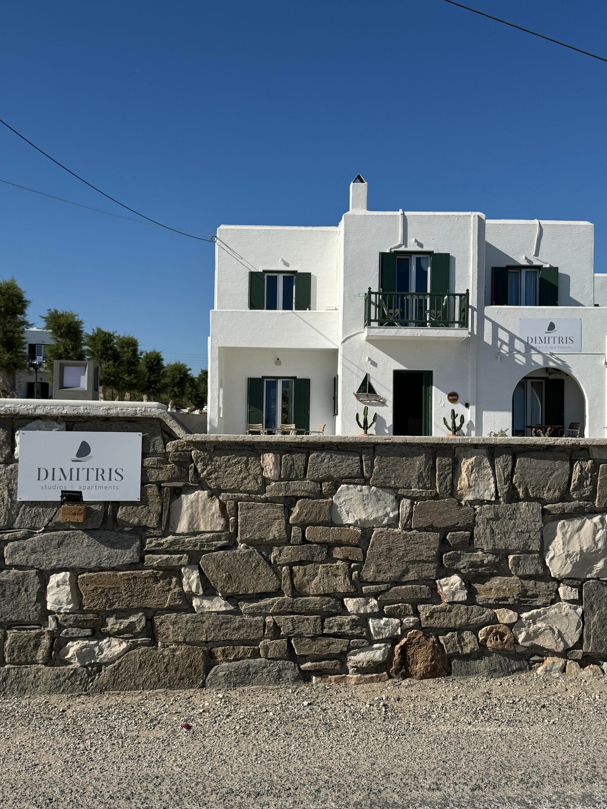 Cute studio 40m² with a carefree feel. King size bed, kitchen, dining table & outdoor terrace in the garden, with a view to the port of Parikia and the sunset. WiFi, satellite TV, A/C in all rooms & shower bathroom. The studio opens to its own garden terrace. We welcome you with fresh fruit, wine, ‘souma’ (our local drink) & breakfast items. Communal garden with sitting corners under the trees The beach is just 700m away! Free Port Transport on arrival/departure upon request.