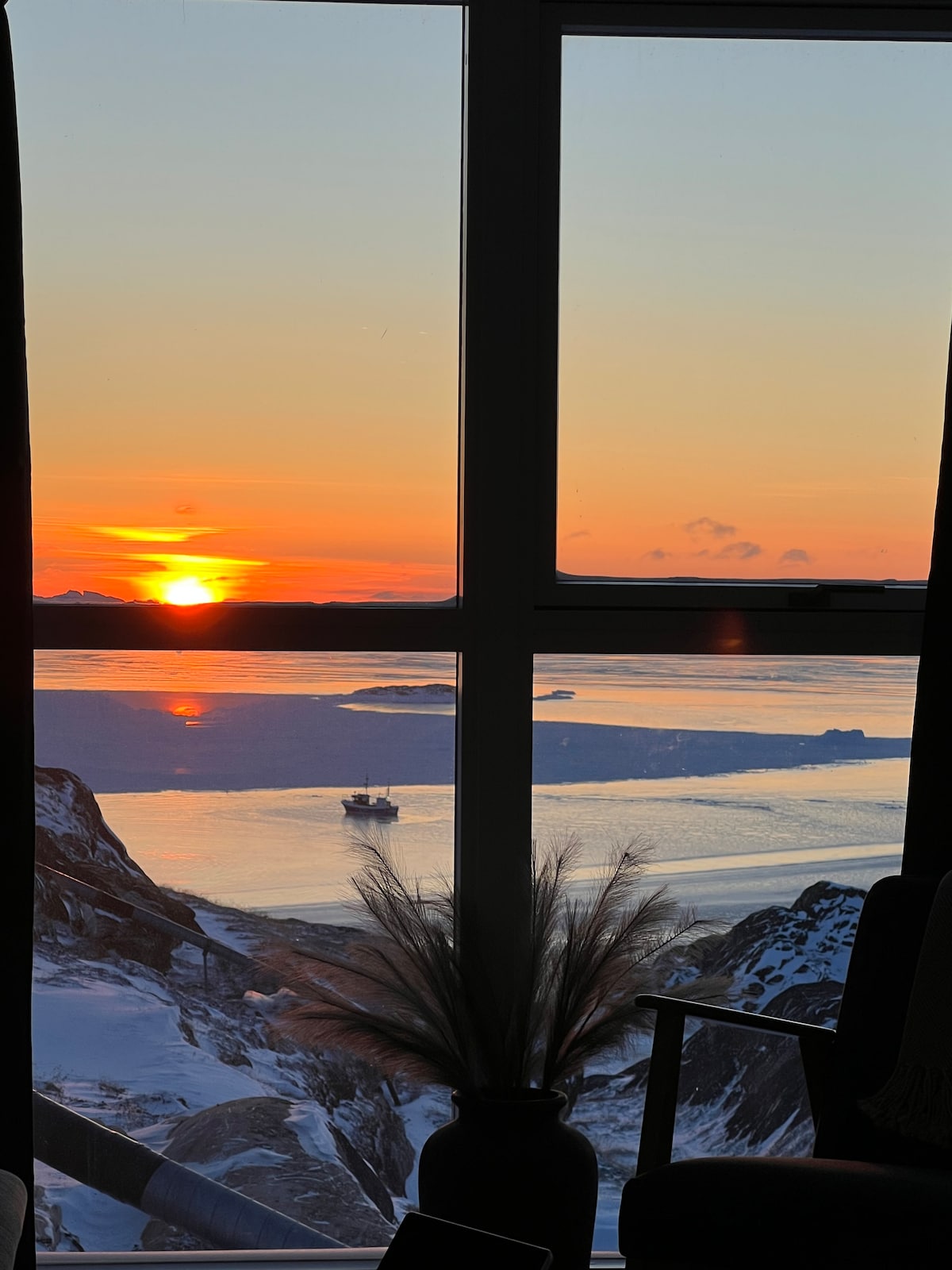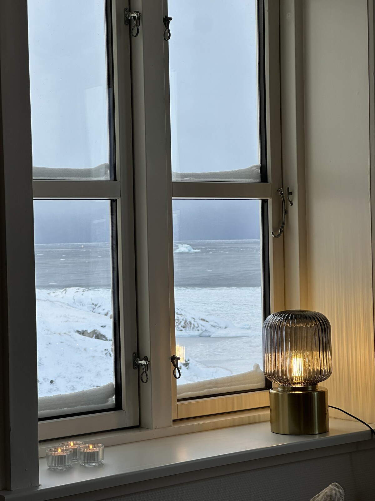This home is located in one of the absolute best locations in Ilulissat, where you can hear the sea just outside and smell the ice from Ilulissat Ice Fjord. There is a view of Ilulissat Ice Fjord, and from the house you can see both sail out to sea from the nearby harbor. If you are lucky, you can see whales from both the living room and the bedroom during the summer months. The home is centrally located in the city, but in a small area where there is no noise. There is easy access to winter swimming if you want to swim among icebergs.