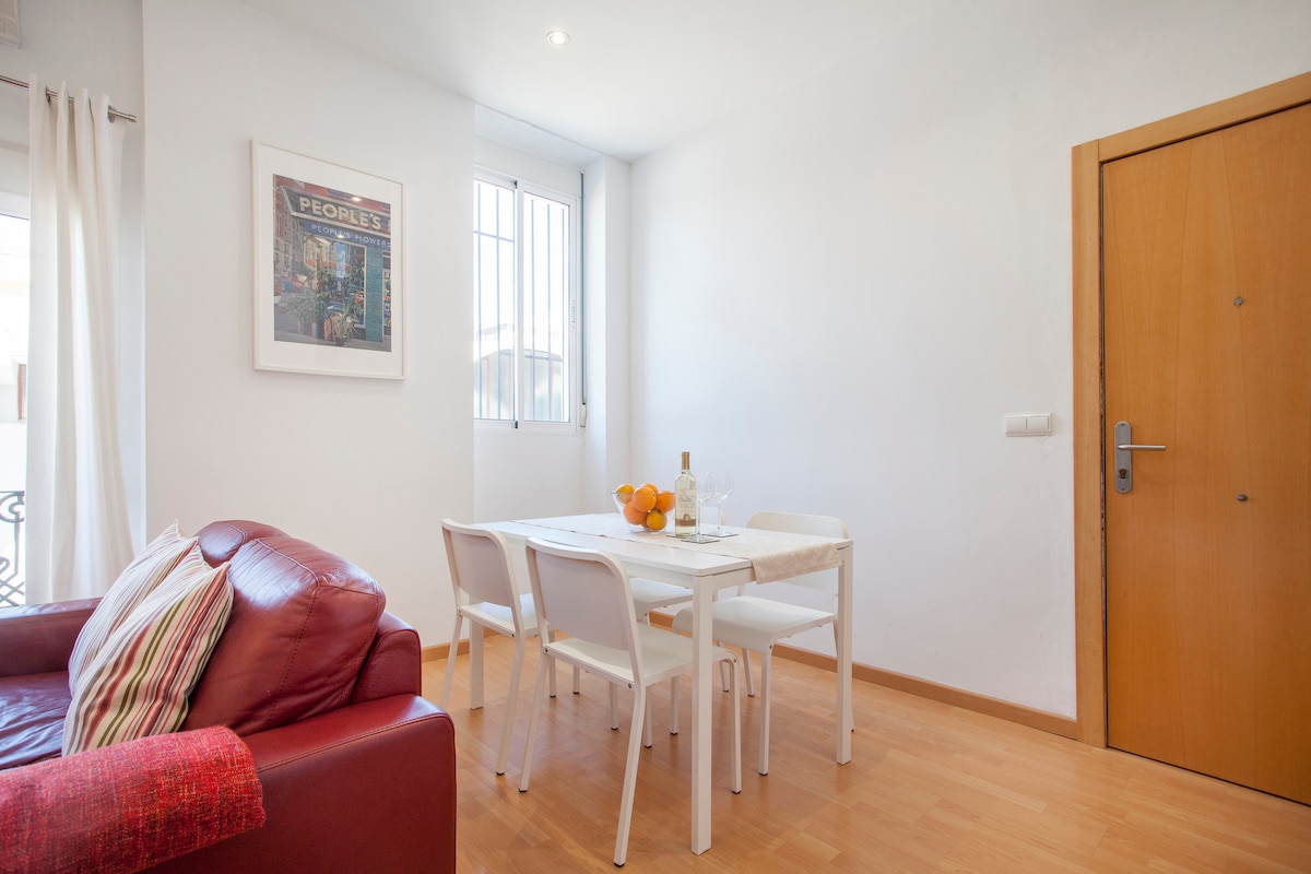 Quiet and bright 1 bedroom apartment in Valencia city center ("El Botànic" neighborhood), just 4 minutes walk to the Old Town and also 4 min. to "Àngel Guimerà" Metro station, the city's best public transport connection hub. Cozy, central, clean and functional, it has everything that a couple or a single would need for a pleasant stay in Valencia. Fiber Optic WiFi Internet connection available (300 MB).