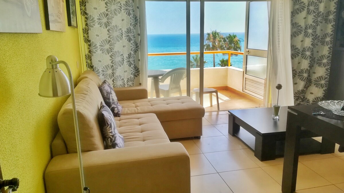 Charming apt, with sea view, in the first line of the beach. Ideal for a relaxing holiday or for golf lovers as it is conveniently situated within a 10 minute drive from 3 worldwide famous golf courses. Excelent location next to a long promenade by the sea.
