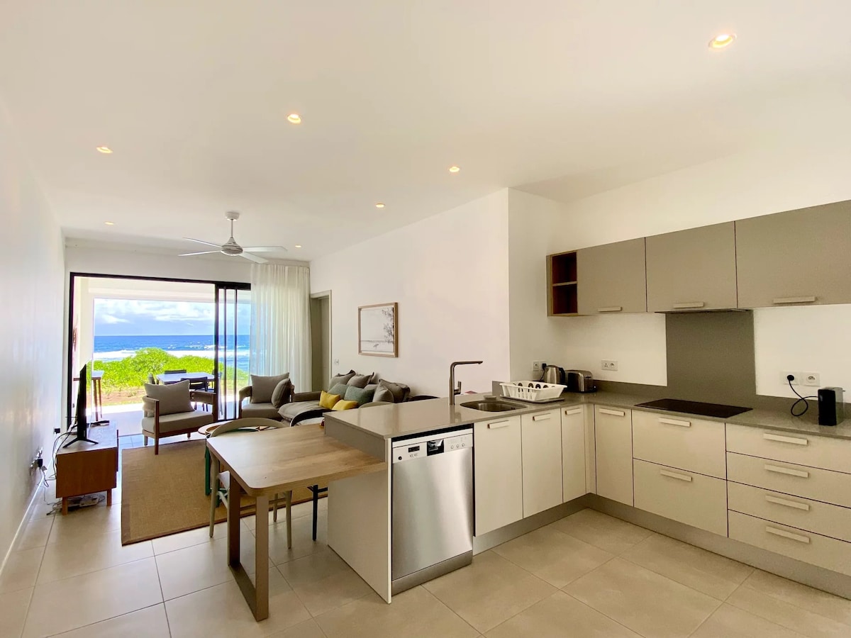 Our apartment is in the first position on Roches Noires beach. Even though the neighborhood is developing, Roches Noires remains one of the most authentic beaches in Mauritius. You can enjoy the sea with peace of mind. However, within a radius of 1.5 to 2 km you will find a grocery store, bakery, greengrocer and 4 or 5 restaurants. You are between Grand Baie and Flacq and you can get there quickly by car.