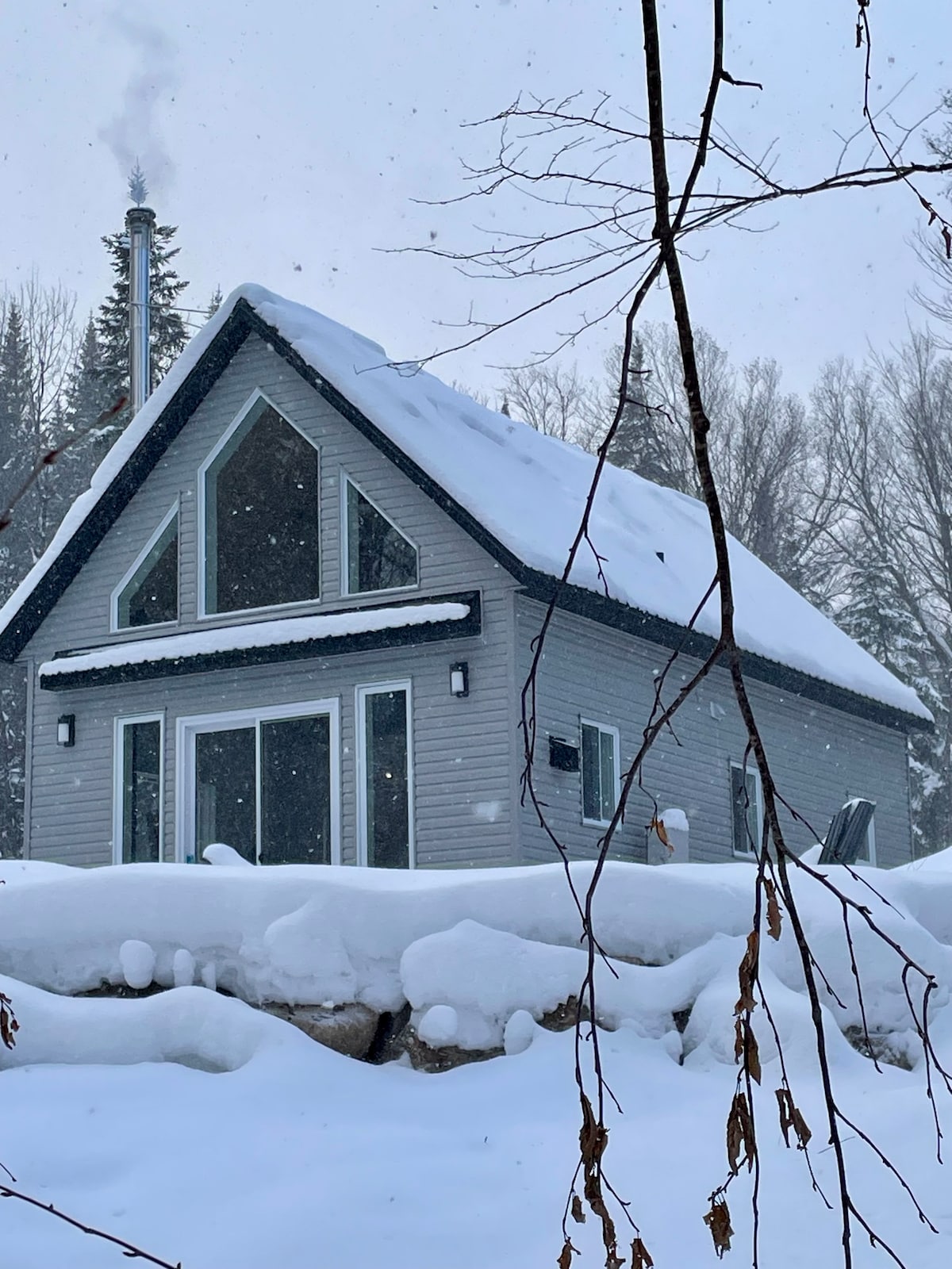 Envie d’une escapade en pleine nature? Ce nouveau chalet à flanc de montagne et de style scandinave saura vous charmer. Avec son terrain de plus de 1 million pieds carrés, vous pourrez profiter sur place d’un lac, d’une rivière, de sentiers pédestres et bien plus! Vous séjournerez dans un endroit où la détente et la nature sont au rendez-vous. Bien équipé, le chalet n’attend que vous! Conçu pour 2 personnes mais pouvant accueillir jusqu’à 3 personnes avec le canapé-lit (simple).