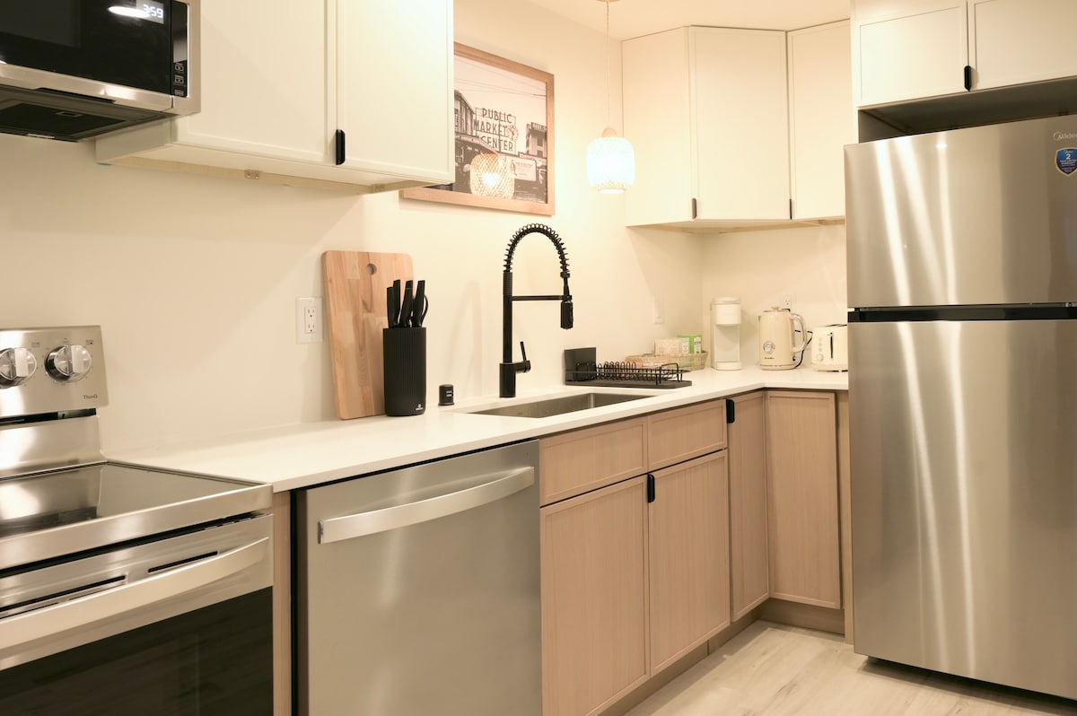 Built in 2021, this 1 bedroom (2 beds) light-filled home is in the heart of Seattle's vibrant Fremont neighborhood and is a perfect getaway for solo travelers, couples, or business travelers seeking comfort and convenience. Located in a quiet neighborhood, it's close to Woodland Park Zoo, Sunday Ballard Farmer's Market, Wallingford, and an easy drive to Downtown Seattle. Complete with Smart TVs, a fully equipped kitchen, washer/dryer, large shower with seat, and heated bathroom floors.