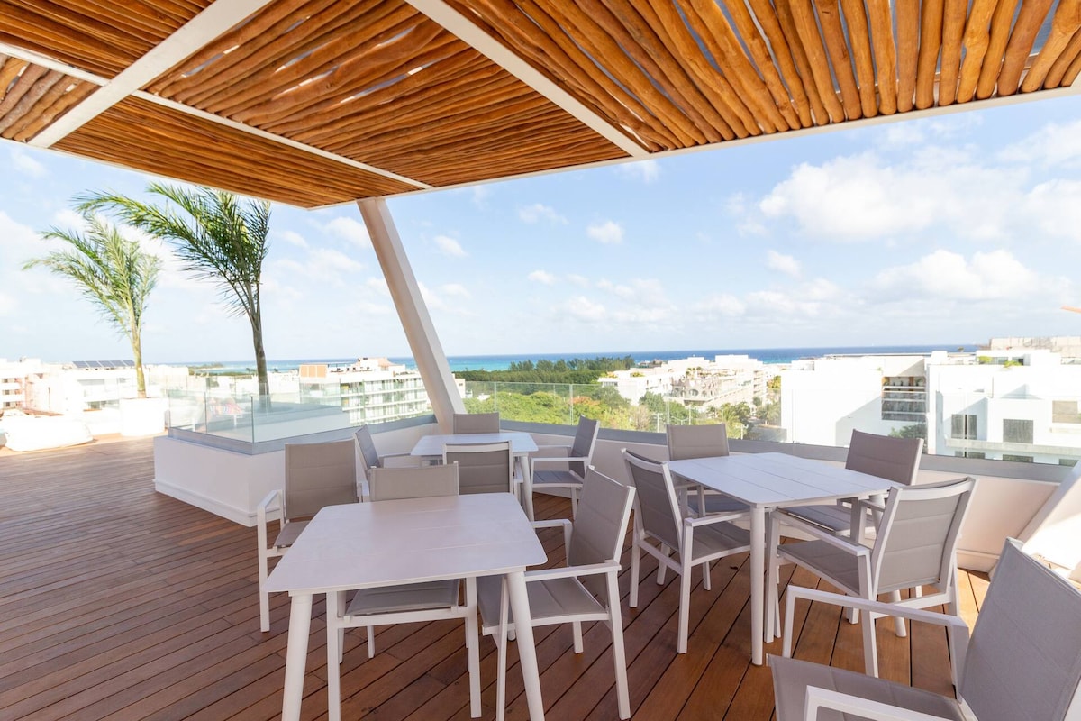★ READY FOR FEBRUARY 2026 ★ ❗️PLEASE READ EVERYTHING❗️ New building uniquely situated on 5th Avenue in Playa del Carmen (away from crowds), about 200 meters / minutes walk to the Beach. Great for groups/couples. ➤ Surrounded by restaurants & entertainment ➤ Steps from 5th Ave & Beach ➤ Walk Score 92/100 close to everything ➤ Private Pool Sun lounging/Grill/Dining area ➤ 3 private balconies ➤ Elevator ➤ Rooftop pool ➤ Equipped Kitchen ➤ Dining for 6 ➤ Washing machine ➤ Dishwasher