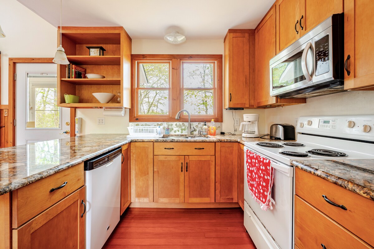 We loved all things SEA…my family built this special Artist Loft Tiny Cottage Retreat. Over the years, family & guests have created beautiful memories here. The Cottage has a large fenced yard, & deck. The inside is an open layout, light and airy. It is very clean and designed with care. The living rm area has a sleeping sofa with a staircase to the loft that has a platform bed and a tiny twin cot. The kitchen is fully equipped & there is a full bath & W/D. 1 mile to Main St/1.5 mi. to Beaches.