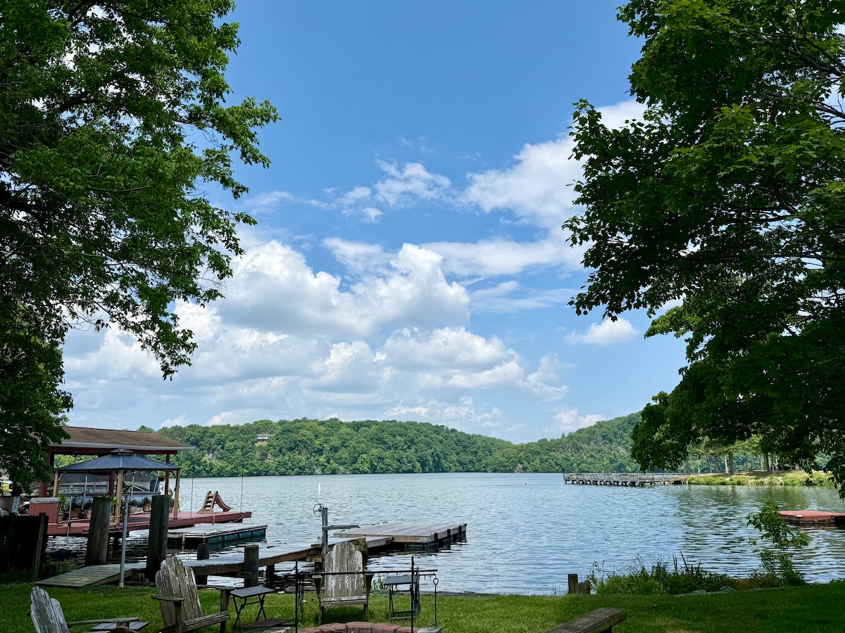 No Lake Access 1,000 sq ft home, 2 BR 1 Bath, 400 sq ft deck, 200 sq ft screen porch with lake views Wifi (20mb on average) Youtube TV Firepit Grill Desk Outdoor Furniture Pets allowed (See Rental Agreement for exceptions) Dog cage with waterproof mats, dog bowls, and feeding mat provided High chair and pack n play are available upon request (please let me know when booking) Relax with the whole family at this peaceful place to stay, with amazing views especially sunsets