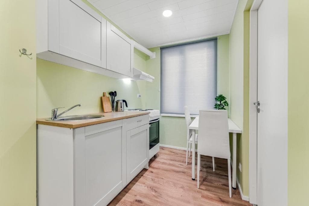 Charming flat in the heart of Tallinn – a freshly renovated city escape just 8 minutes to Old Town, 6 minutes to the airport, 2 minutes to the bus station, 7 minutes to the Song Festival Grounds, and steps from public transport. Step inside and unwind: curl up by the fireplace, enjoy cool A/C, or kick back on the couch with a smart TV and fast Wi-Fi. The open-plan layout features a fully equipped kitchen and a cozy bedroom with a comfy queen-size bed and blackout blinds for restful sleep.