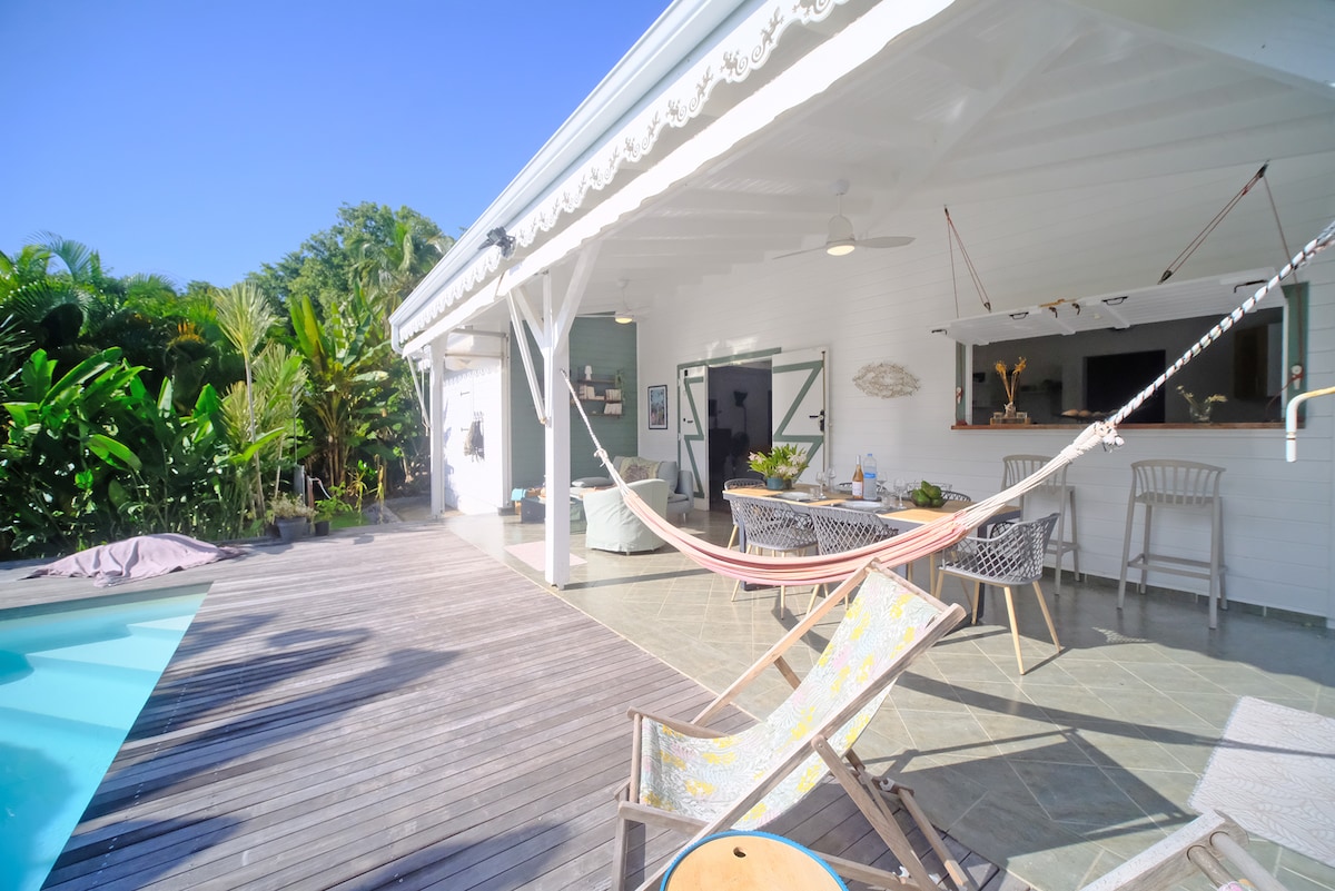 This peaceful Villa offers a relaxing break for the whole family. Located 10 minutes from the beaches and 5 minutes from the market and fishing port of St. François, Villa Pahloé welcomes you to Saint François. The villa offers 3 bedrooms, each with its own bathroom and comfortable bedding. You'll appreciate the 6x4m swimming pool, the wooded garden and the shaded terraces for your meals and moments of idleness. Tastefully decorated, you'll have an excellent stay. See you soon in Guadeloupe