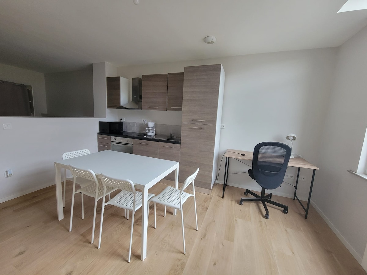 Completely renovated 2-room apartment in the city center of Valenciennes close to shops, 5 min walk from the Place d'Armes. Equipped kitchen: oven, fridge, microwave, stove, washing machine, coffee maker. Double bed rooms 140 x 200 cm (linens and towels provided) Fiber optic internet and TV Public transport 2 minutes away (bus and tram stops). SNCF train station 5-min walk Car rental agency at the bottom of the building. Free parking 500 m away