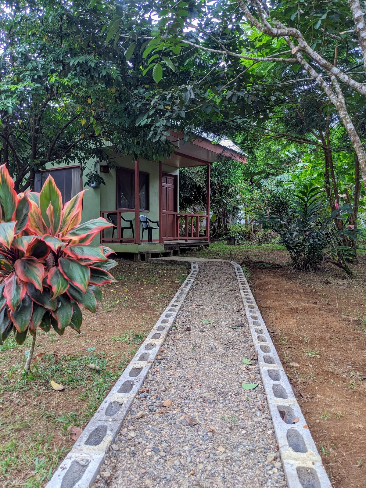 Our cosy cabins are nestled in the heart of Costa Rica's lush landscape surrounded by vibrant green foliage and towering trees. The new cabins have outdoor kitchens and large windows that invite in the beauty of the outdoors The grounds are a secluded paradise of rich biodiversity with colourful plants and blossoming flowers and local wildlife yet we're a 15 min leisurely stroll from the beach and shops and bars or a 3 minute car ride. The host speaks English, French and basic Spanish