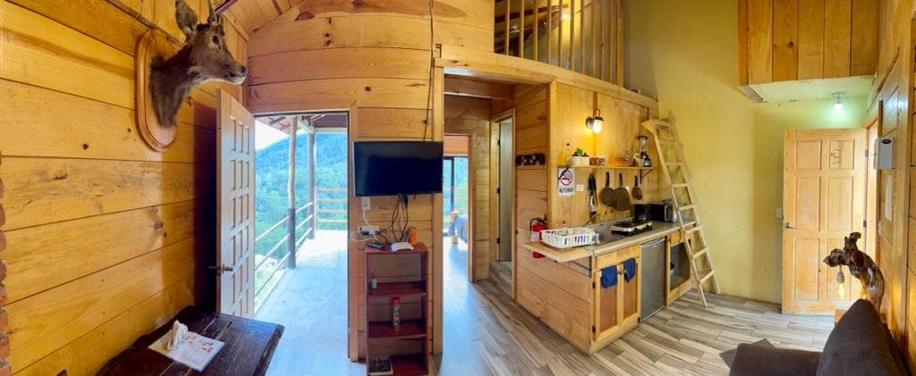 Despierta entre neblina suave y árboles infinitos en una cabaña de lujo escondida en el corazón del bosque de Pinal de Amoles. Un refugio privado donde la naturaleza, el silencio y la magia se mezclan para regalarte descanso real —del que sí se siente. Enciende la chimenea, déjate abrazar por su calidez y olvídate del mundo. Al atardecer, brinda con una copa de vino en la terraza mientras el bosque se pinta de dorado frente a tus ojos. Aquí no vienes solo a hospedarte… vienes a desconectarte...